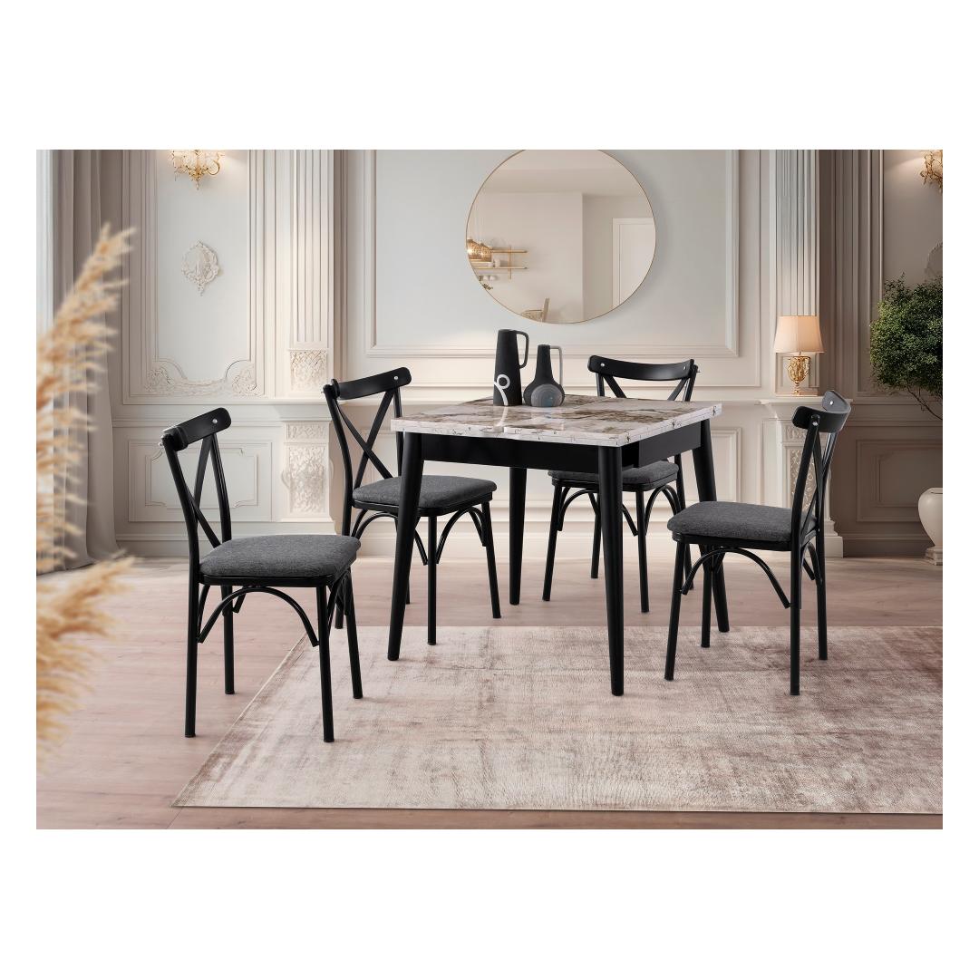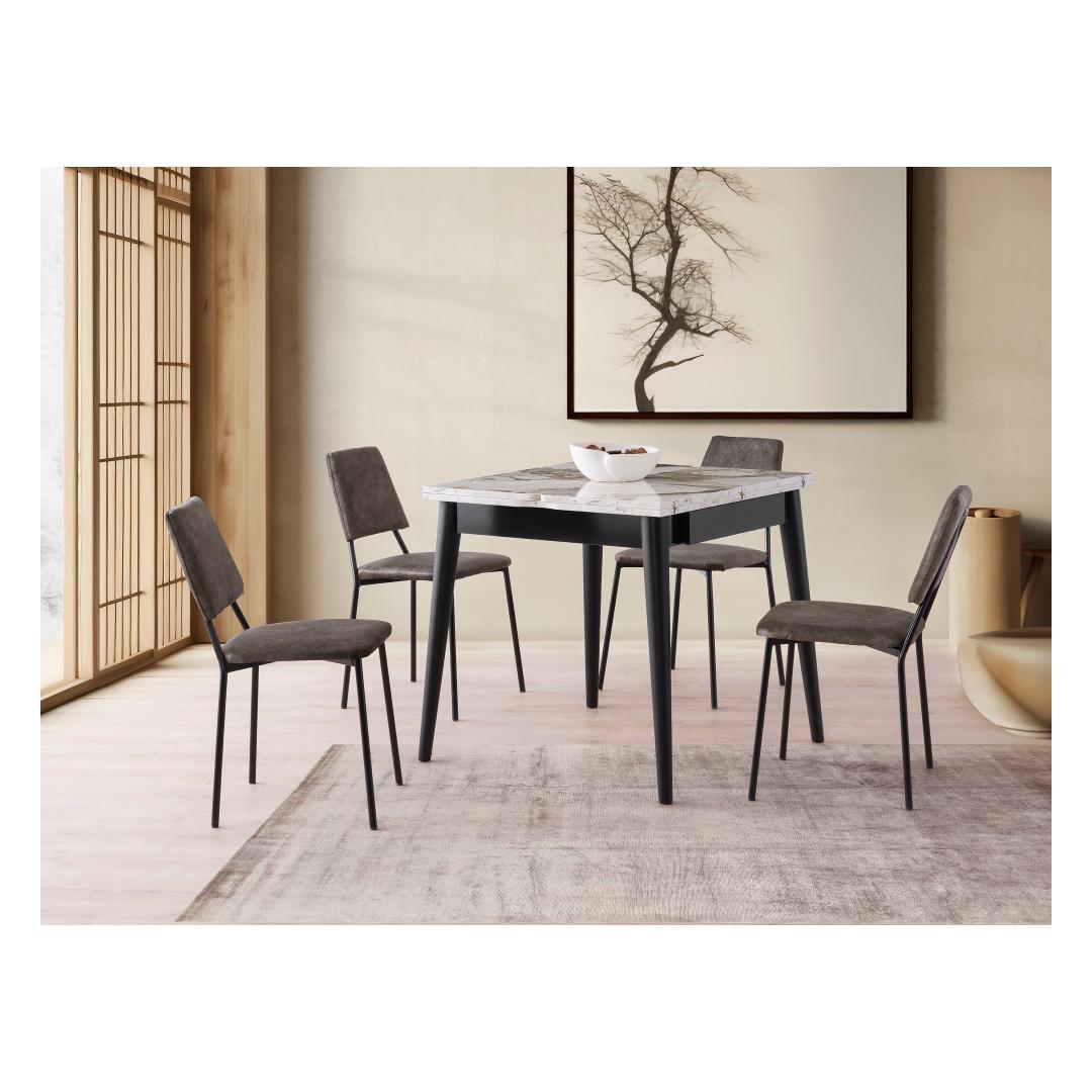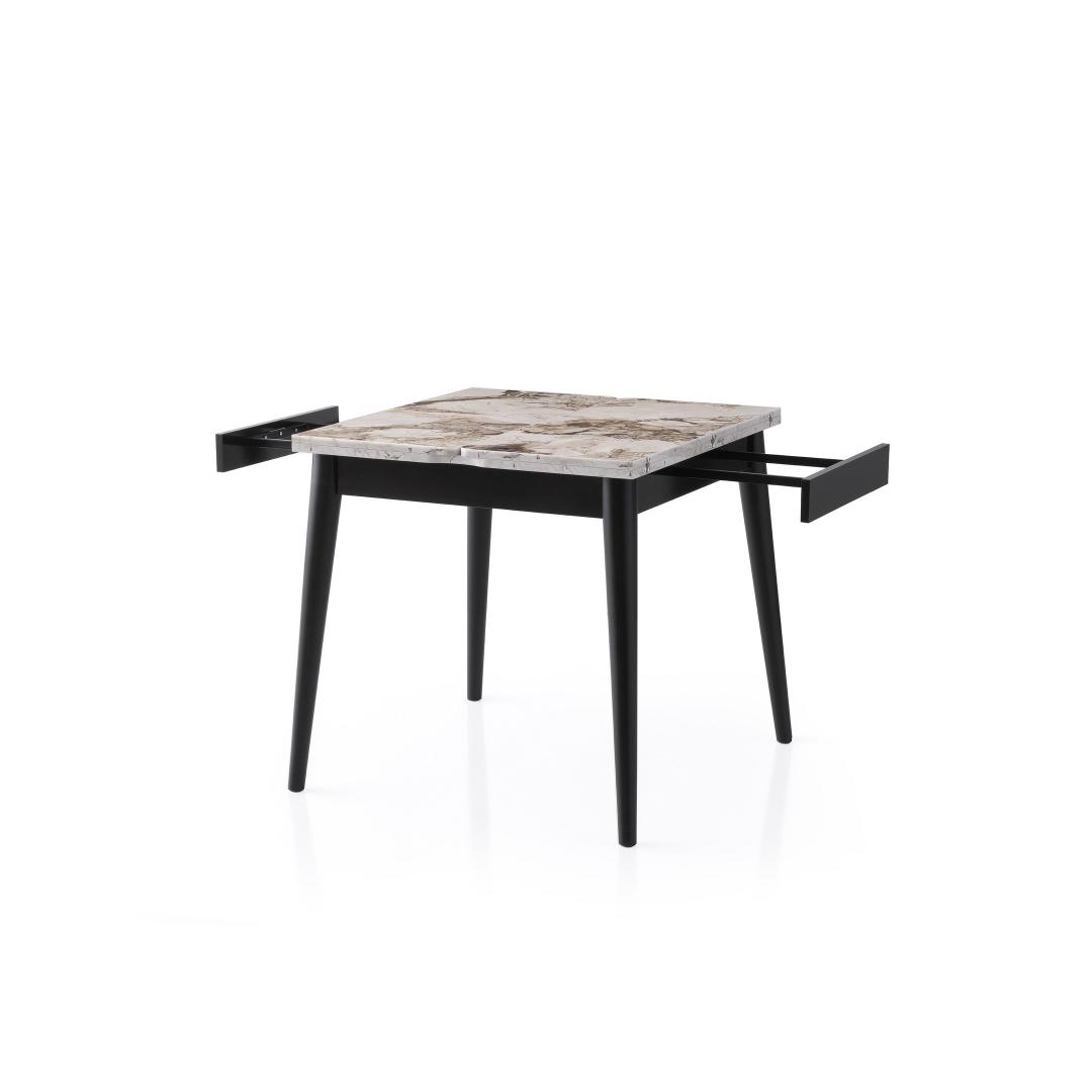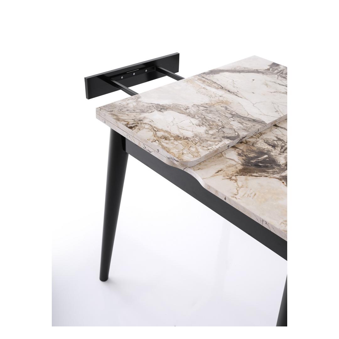 Pikendatavas söögilauaks on klanitud valge marmorist viimistlus, mis tõstab koheselt iga söögitoa ilme. Selle raudsed jalad pakuvad stabiilsust ja vastupidavust, tagades, et see laud kestab aastaid. Ükskõik, kas korraldate õhtusöögi või naudite perega vaikset sööki, on see laud ideaalne valik.