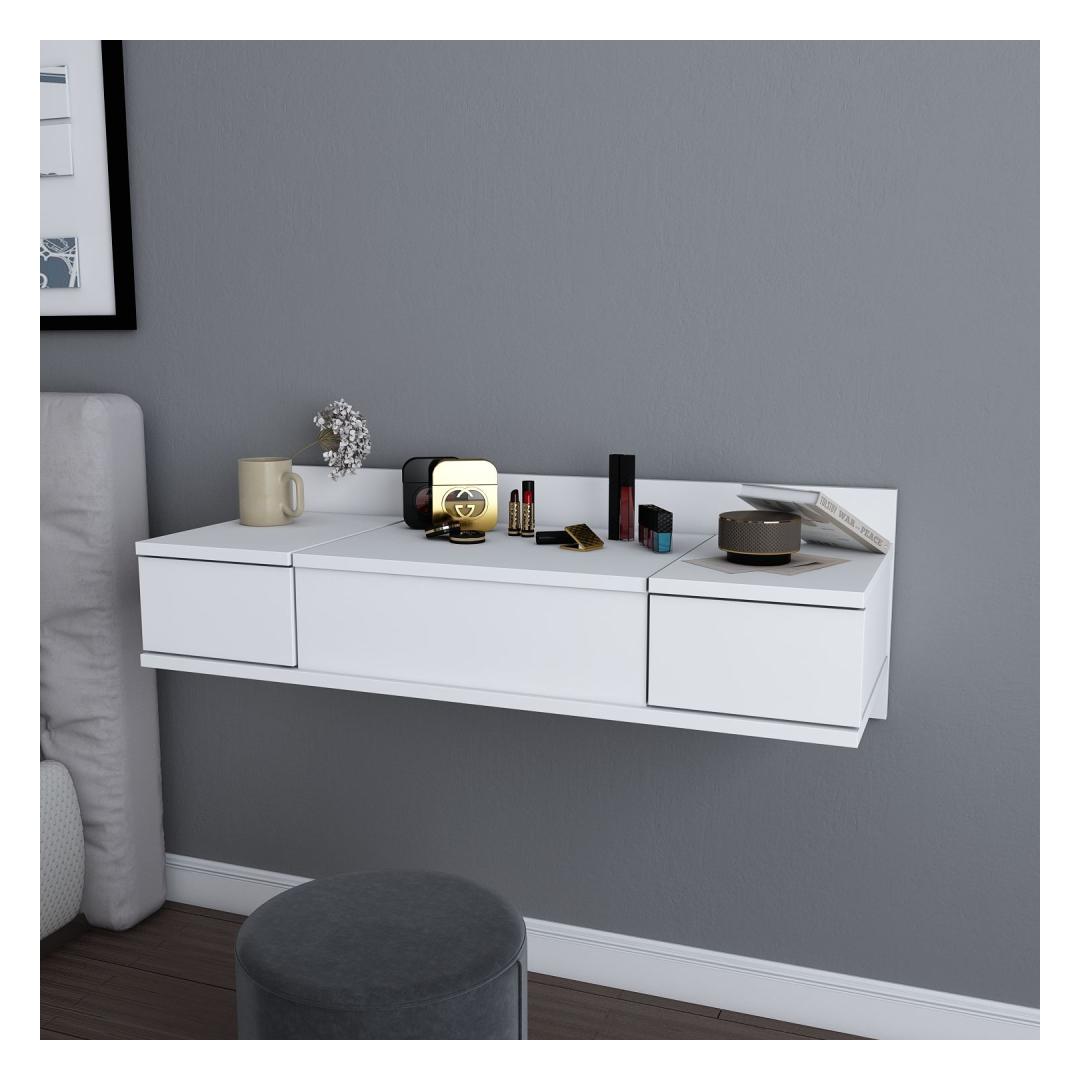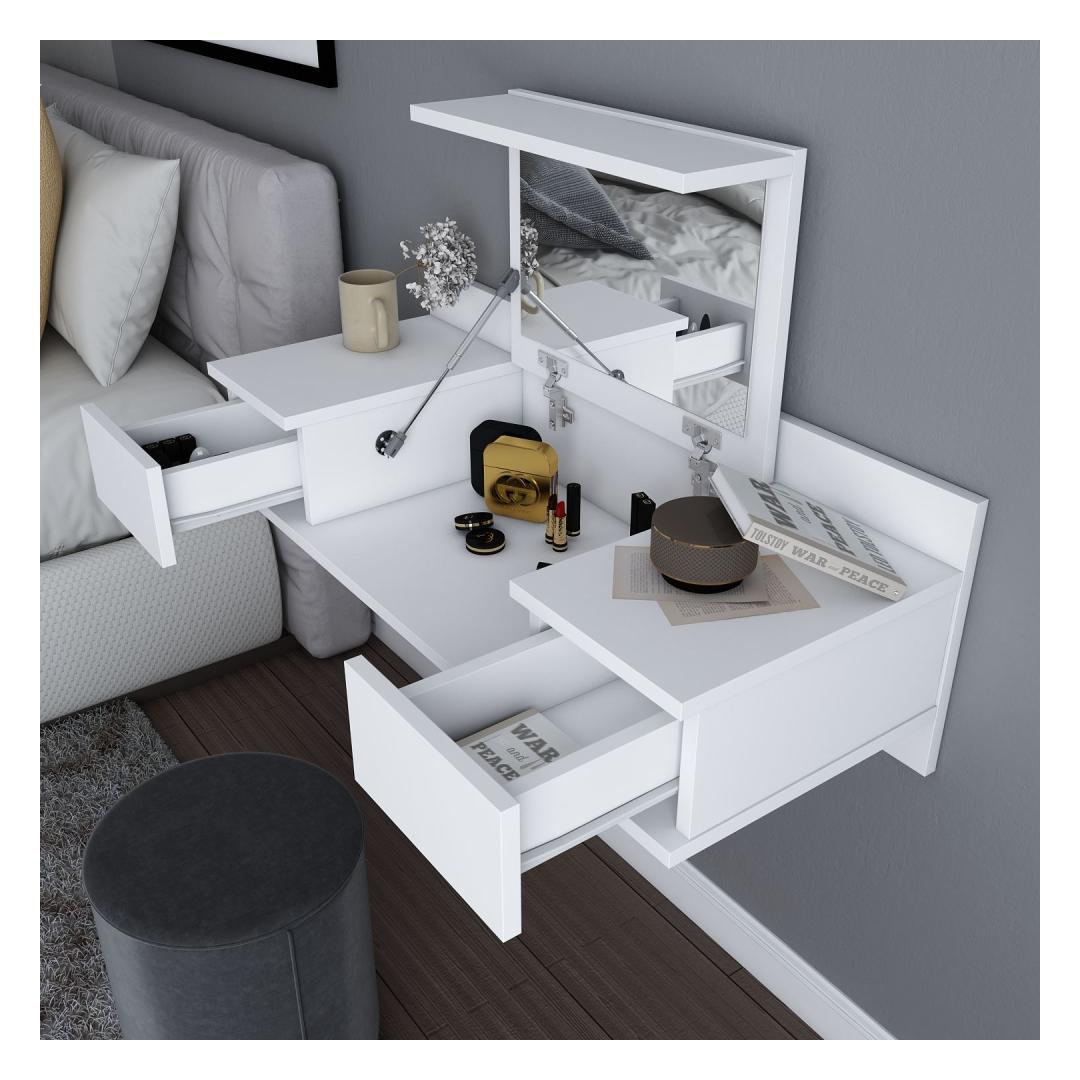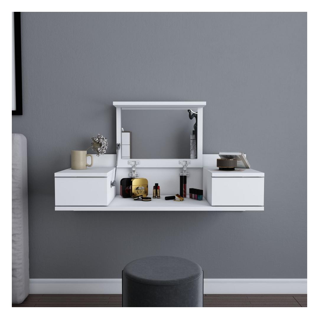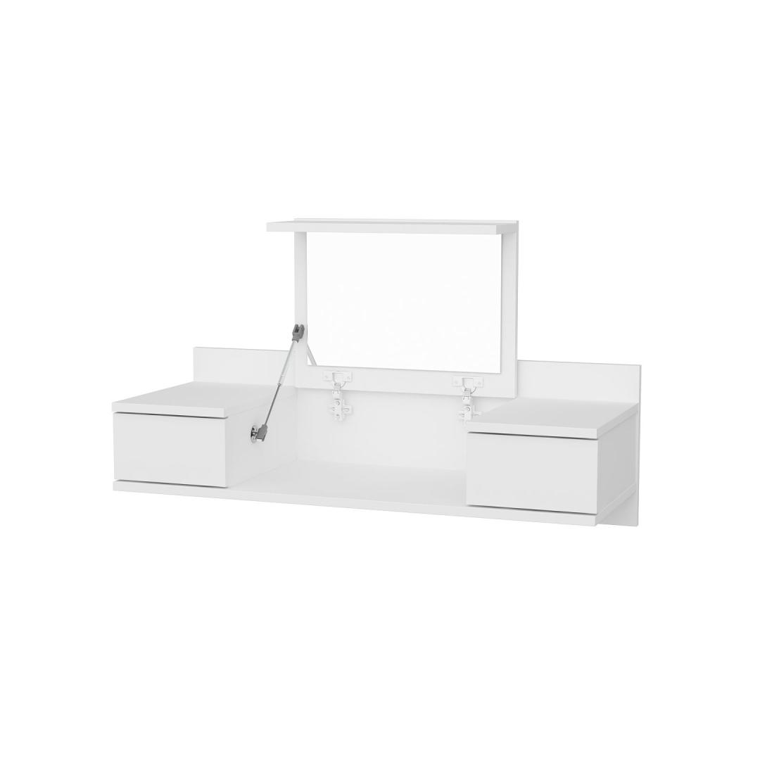 Muuda oma hommikurutiin meie kauni meigilaudaga. See elegantne mööbliese mitte ainult ei paranda sinu magamistoa välimust, vaid muudab ka valmis saamise lihtsaks. Sujuv disain ja valge värv lisavad igasse ruumi peenust, samas kui 100% melamiinkattega puitlaastplaat tagab vastupidavuse ja pikaealisuse.