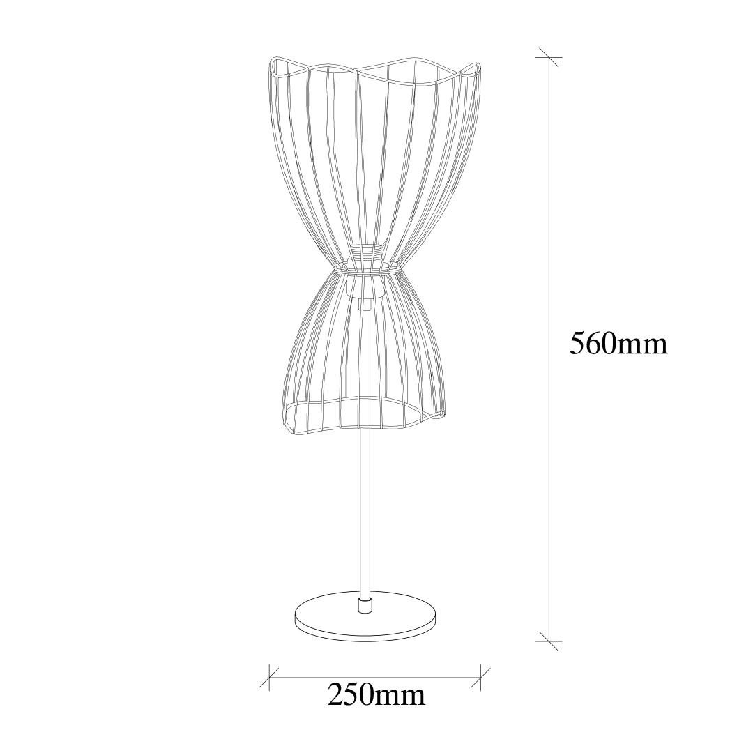 25 x 25 cm suuruse ja 56 cm kõrgusega lamp on ideaalse suurusega, et sobida sujuvalt igasse ruumi. Esimese korgi läbimõõt 25 cm ja kõrgus 24 cm ning teise korgi läbimõõt 18 cm ja kõrgus 17 cm loovad visuaalselt atraktiivse silueti, mis on nii stiilne kui ka funktsionaalne. Alusplaat, mille läbimõõt on 17 cm ja kõrgus 2 cm, annab stabiilsust ja tagab, et lamp seisab kindlalt igal pinnal.