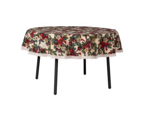 Laudlina WINTER FLOWERS pitsiga, D170cm, lindid, 50% polüester, 50% puuvill, kangas 475