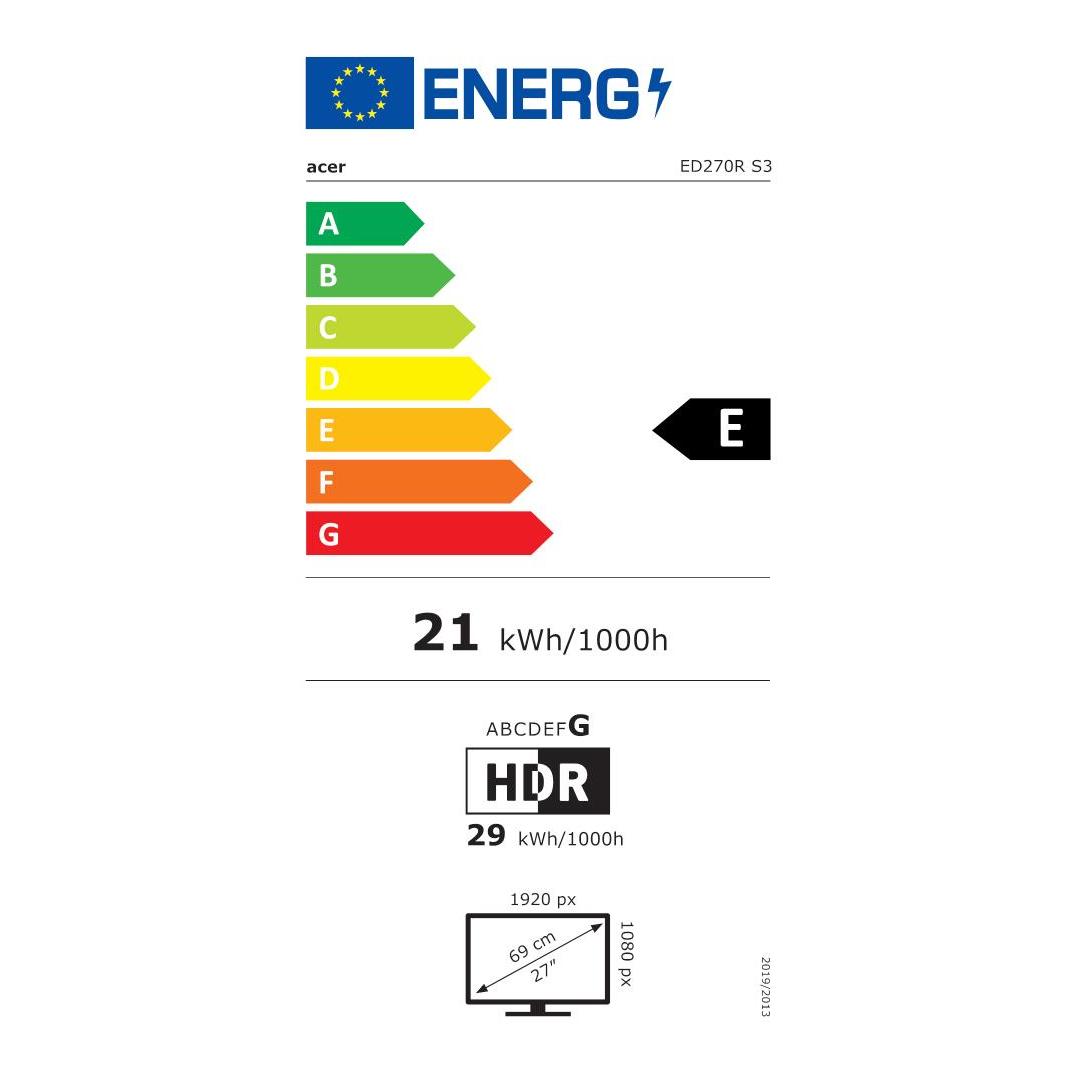 Colour Black Acer ED0 series monitor ED270RS3BMIIPX