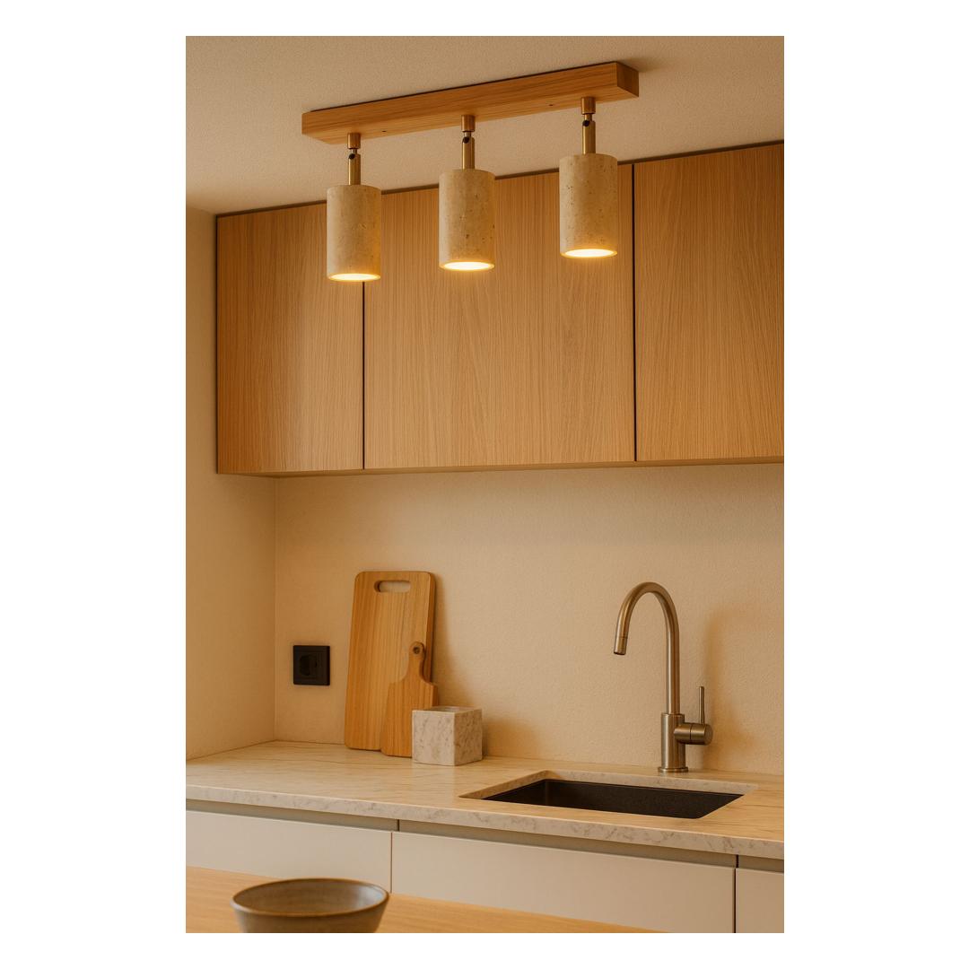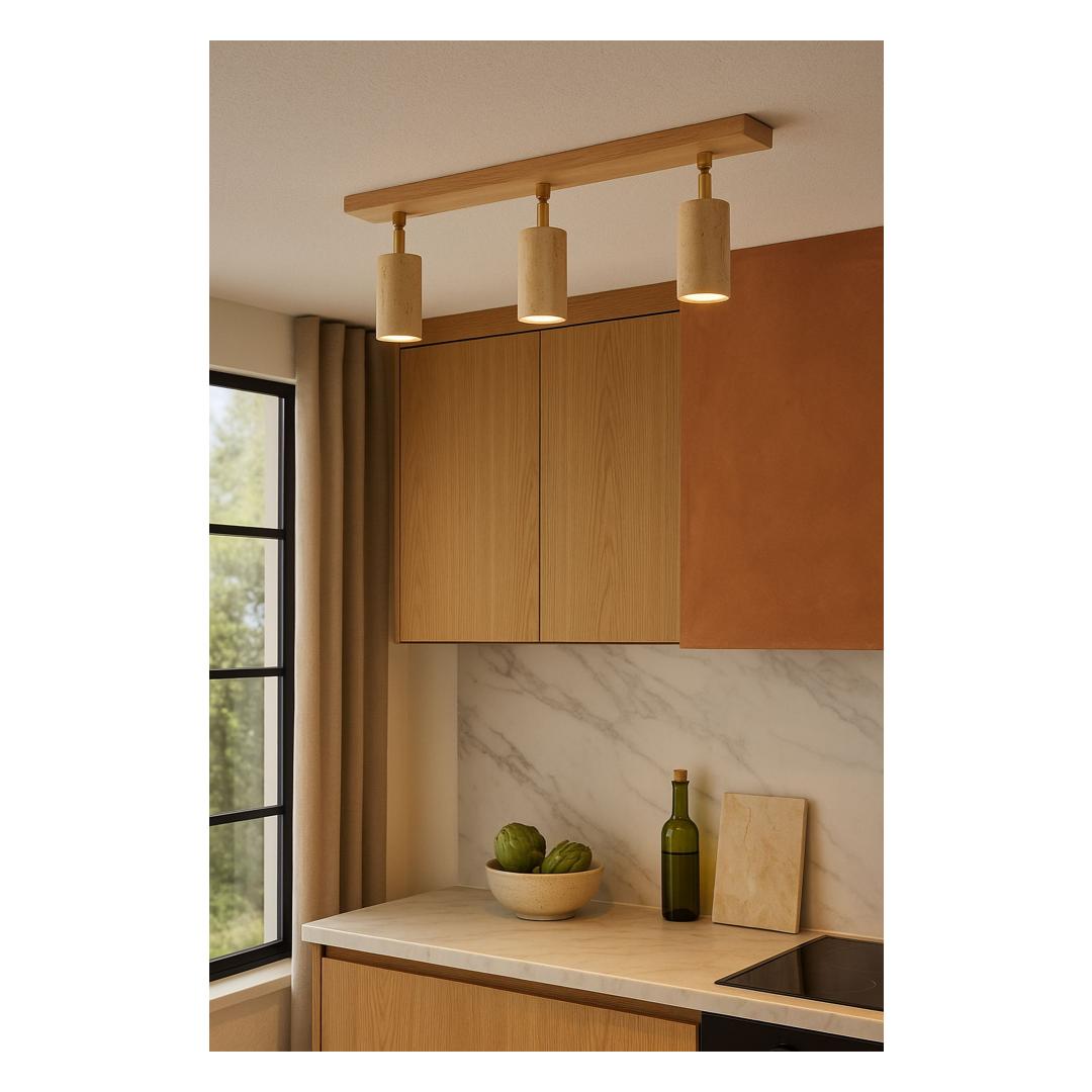 Tehke avaldus selle silmatorkava lühtriga, mis ühendab kaasaegse disaini looduslike elementidega. Sujuv metallkorpus kontrastib kaunilt orgaanilise travertiini kattega, luues silmapaistva keskpunkti, mis jätab teie külalistele mulje ja jääb kauaks meelde.