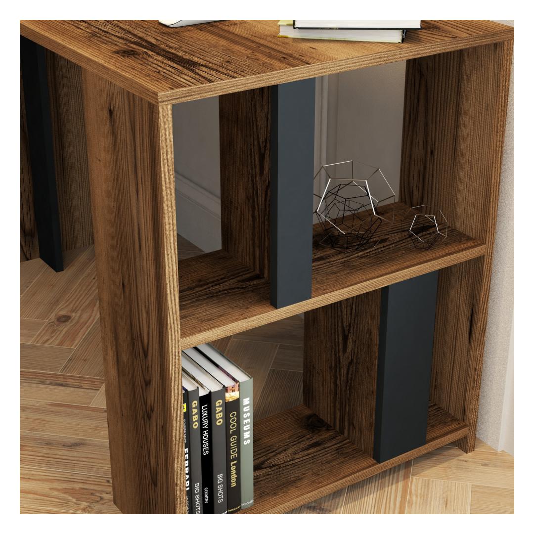 Meie töölaud toob oma moodsa ja uudse kontseptsiooniga elegantsi ja rafineerituse igasse ruumi. Pähklipuu ja antratsiidi värvide kombinatsioon lisab kaasaegset hõngu, muutes selle ideaalseks täienduseks teie kodu või kontori sisustusele.