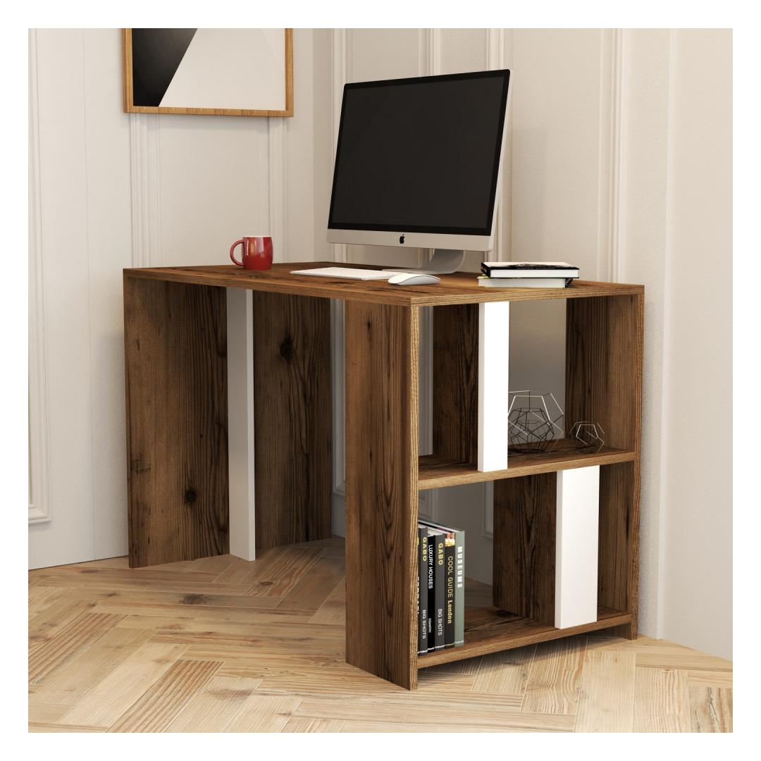 Meie õppelaua moodne ja uudne disain lisab teie õpperuumi elegantsi ja rafineeritust. Pähklipuu ja valge värvi kombinatsioon loob stiilse kontrasti, mis muudab selle ideaalseks täienduseks igasse kaasaegsesse interjööri.