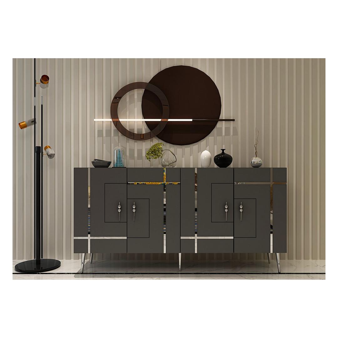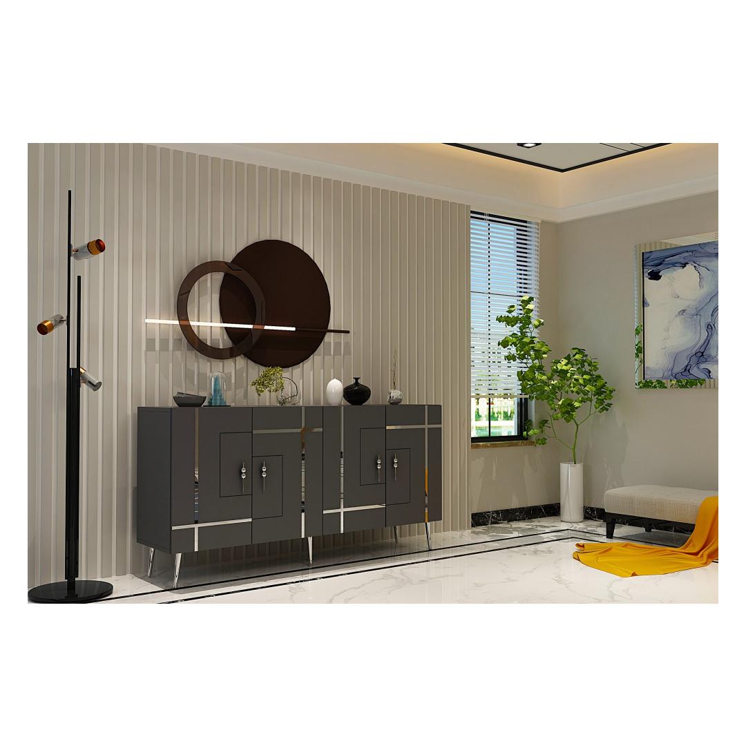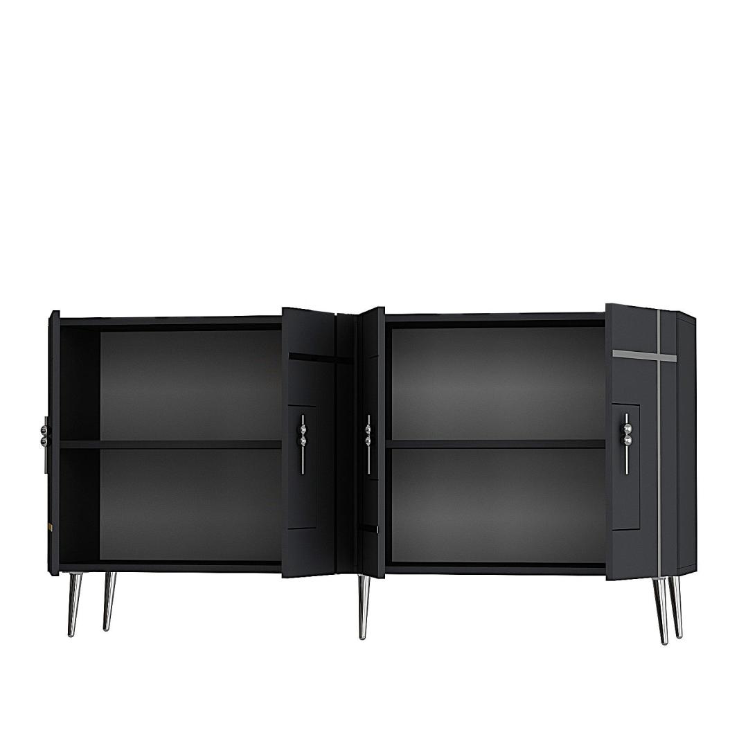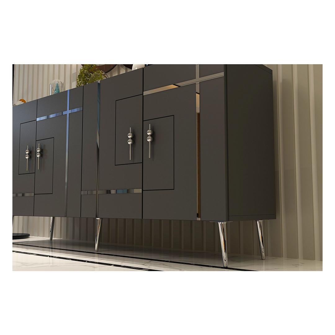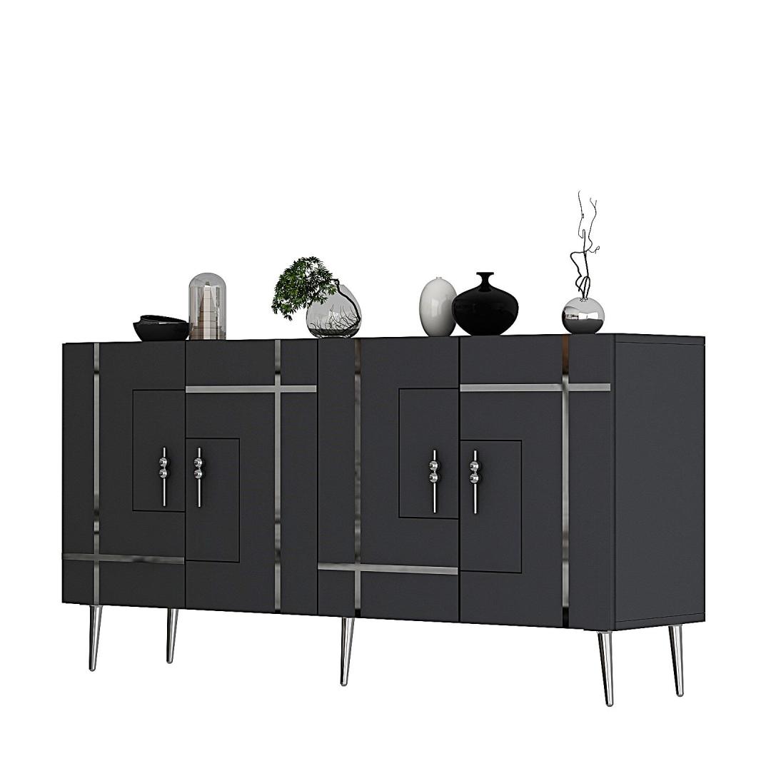 Tutvustame meie uimastavat antratsiidi ja hõbeda konsooli, mis toob elegantsi ja rafineeritust teie kodu igasse tuppa. See konsool ei ole lihtsalt mööblitükk, see on stiili- ja maitseavaldus. Elegantsus ja elegantsSelle konsooli elegantse disainiga, kombineerituna antratsiidi ja hõbedase värviga, õhkab luksust ja rafineeritust. See tõstab koheselt teie elutoa, koridori või mis tahes ruumi, kuhu te selle paigutate, välimust.Väga mitmekülgne ja funktsionaalneSuurepärase 150 cm laiuse ja mitme riiuliga pakub see konsool piisavalt ruumi raamatute, sisustusesemete või muude oluliste esemete jaoks, mida soovite välja panna. Riiulid on mõeldud eri suurusega esemete paigutamiseks, mis teeb sellest mitmekülgse mööblieseme igasse ruumi. Tugev ja vastupidavValmistatud 100% melamiiniga kaetud puitlaastplaadist, ei ole see konsool mitte ainult stiilne, vaid ka vastupidav. Vastupidav konstruktsioon tagab, et see suudab kõik teie esemed turvaliselt ja muretult hoida. Lihtsalt paigaldatavKonsooli saab hõlpsasti seinale kinnitada, pakkudes stabiilsust ja turvalisust. Jala kõrgus 15 cm lisab konsooli üldisele stabiilsusele, muutes selle usaldusväärseks mööbliesemeks teie kodus. Lisage oma koju antratsiidi ja hõbedase konsooliga rafineeritust ja funktsionaalsust. Tellige oma juba täna ja muutke oma eluruum stiilseks pelgupaigaks. Tehnilised üksikasjad:Materjal: Materjal: Materjal: Materjal: Materjal: Materjal: Materjal: Materjal: materjal: 100% melamiiniga kaetud puitlaastplaatLaius: 150 cmKõrgus: 75 cmSügavus: 35 cmRiiuli laius: 72 cmRiiuli kõrgus: 27 cmJala kõrgus: 15 cmVärv: Antratsiit ja hõbedane Värv: Anthracite Silver