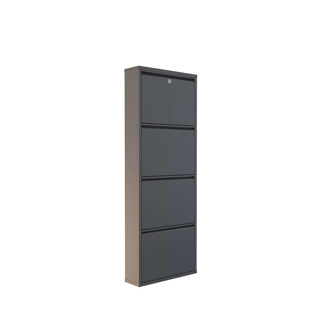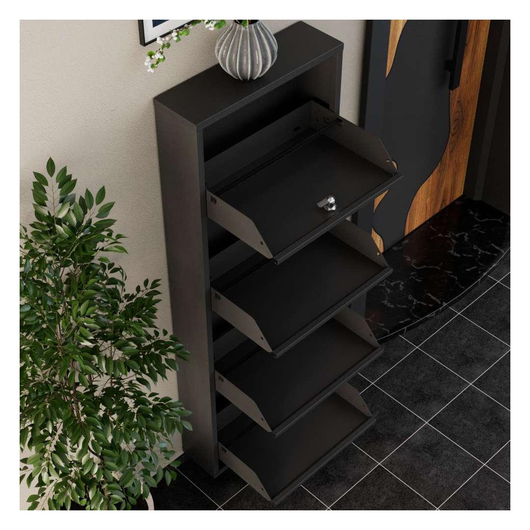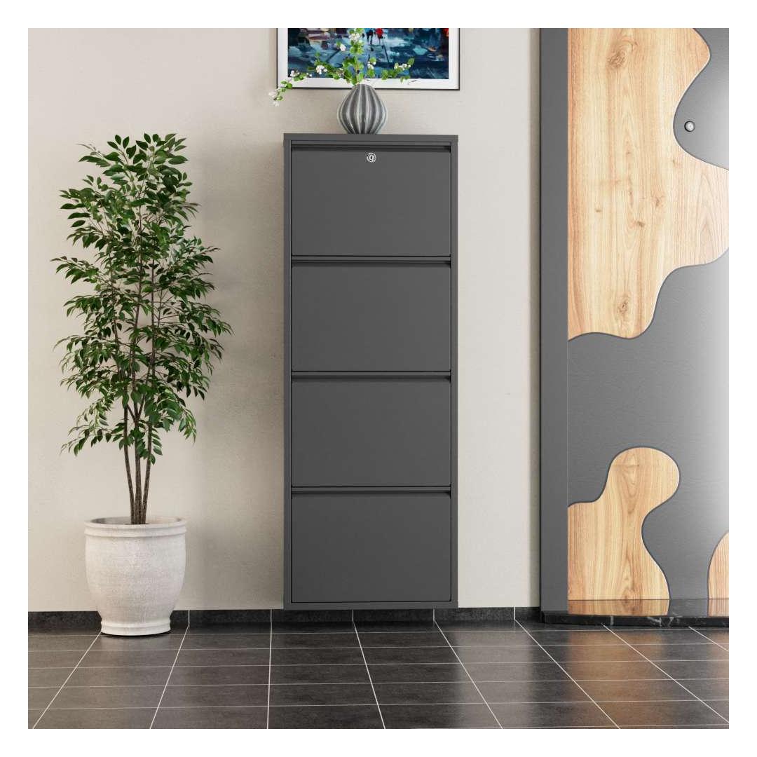 Selle modernse disaini ja antratsiidi värviga kingakapp lisab igasse ruumi elegantsi. Keskelt avanevad uksed magnethoidikutega muudavad kingadele ligipääsu lihtsaks, hoides need samas silma alt eemal. Ütle hüvasti segaste kingapakkide ja tere korrastatud ning organiseeritud ruumile.