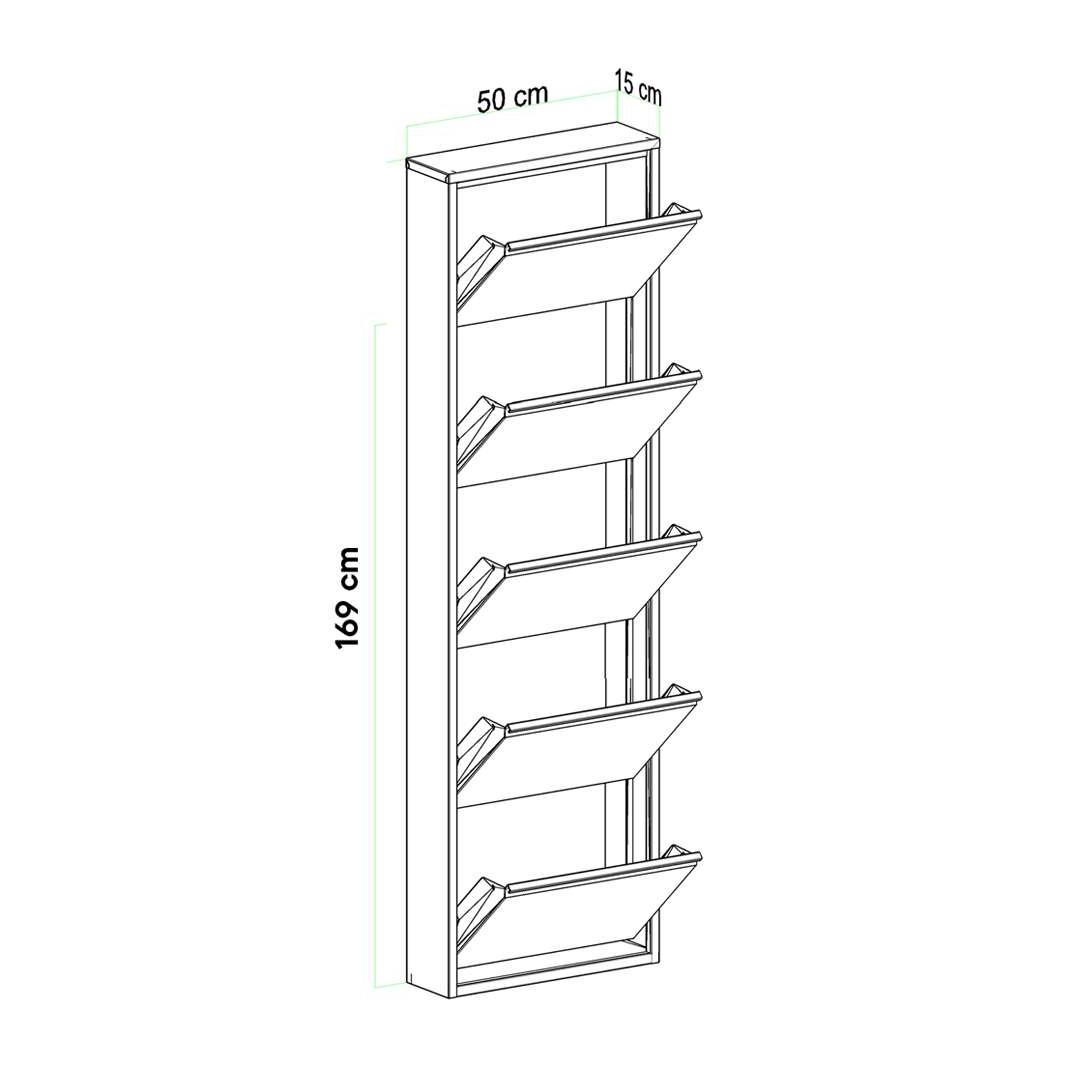 Laienedes 50 cm, kõrgus 169 cm ja sügavus 15 cm, on see kingakapike kompaktne, kuid piisavalt avar, et mahutada kõik sinu lemmikpaari. Lisaks saab seda kergesti seina külge kinnitada, säästes väärtuslikku põrandapinda ja hoides su esiku korras ja segaduseta.
