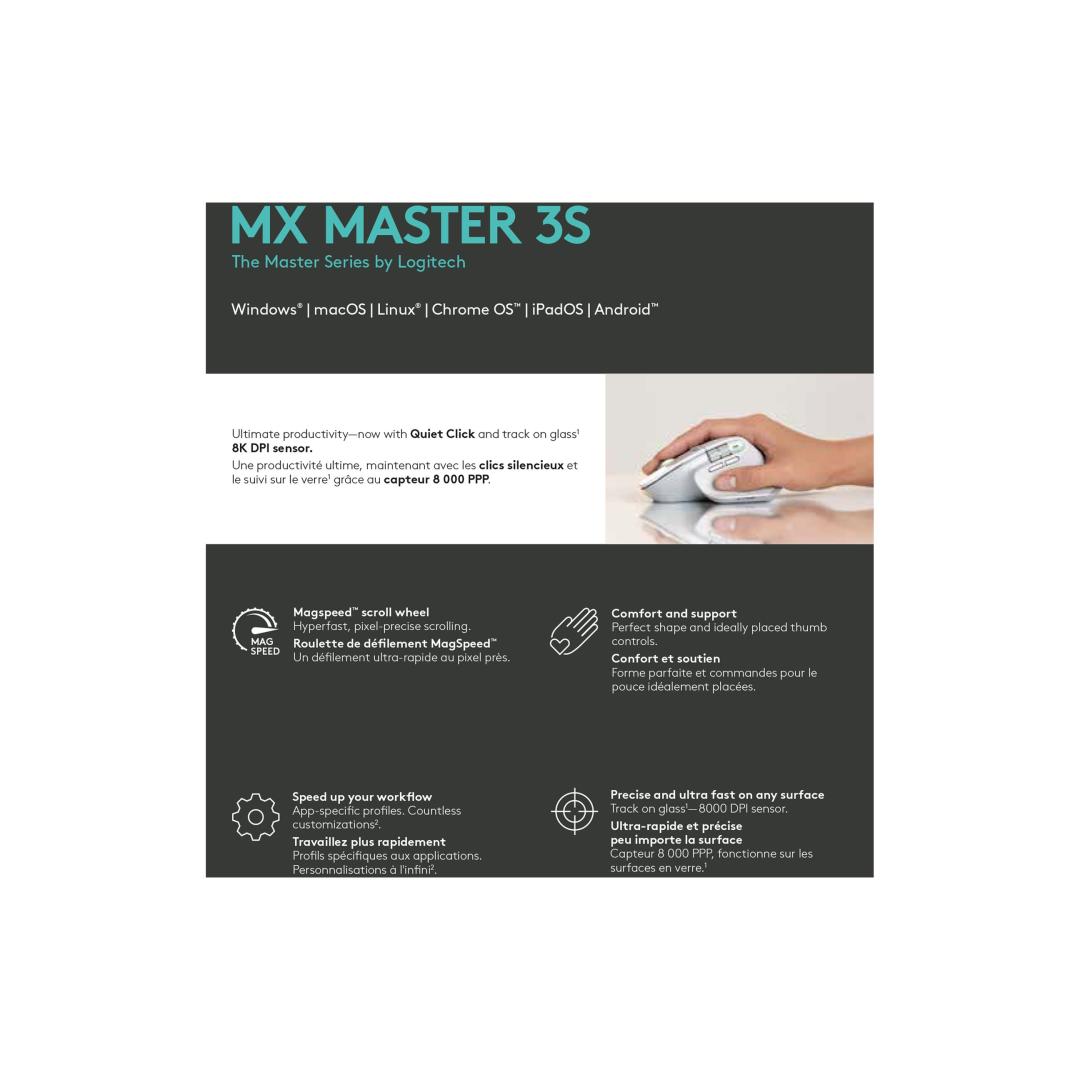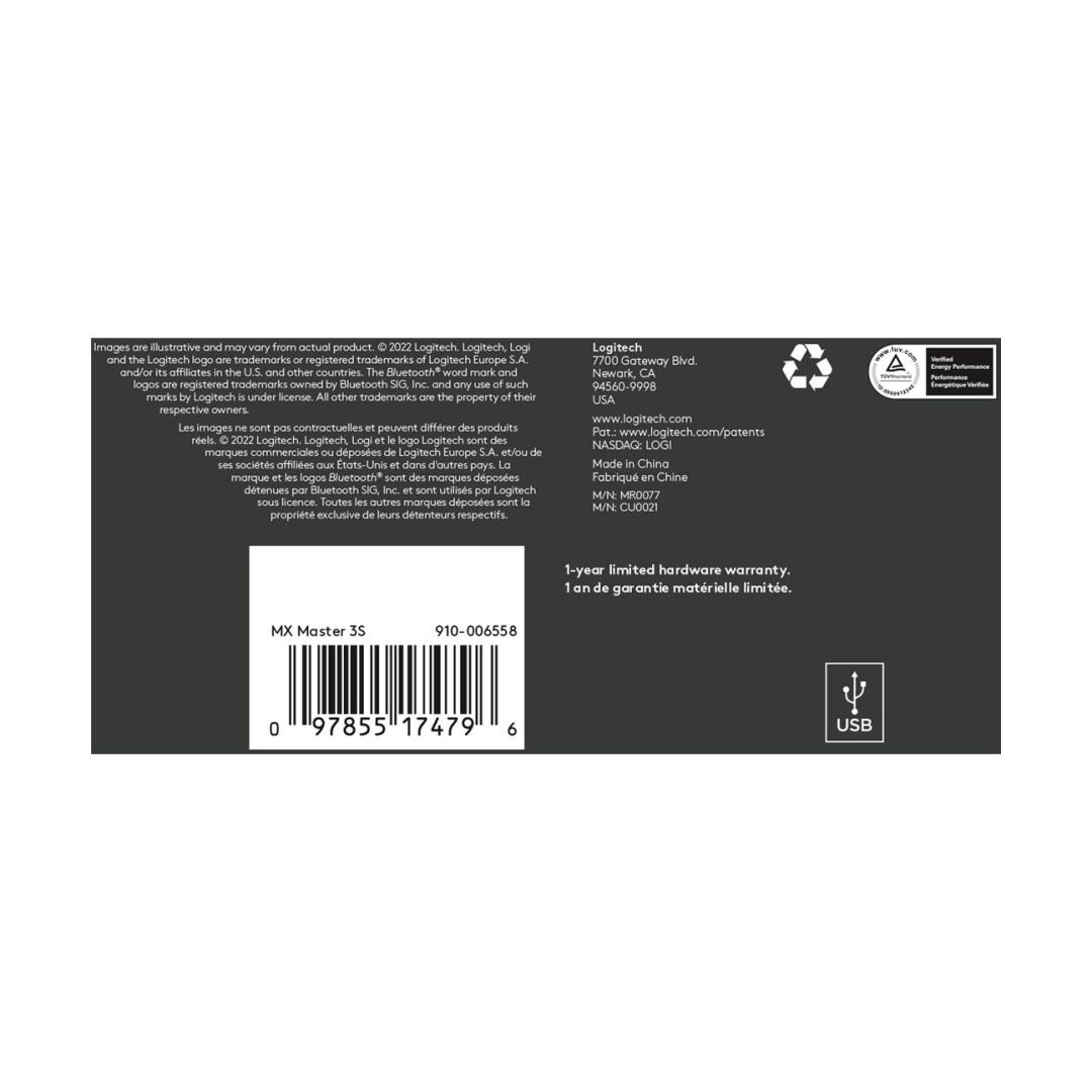 LOGITECH Master Series MX Master 3S Mouse ergonomic optical 7 buttons wireless Bluetooth 2.4 GHz Bolt USB receiver