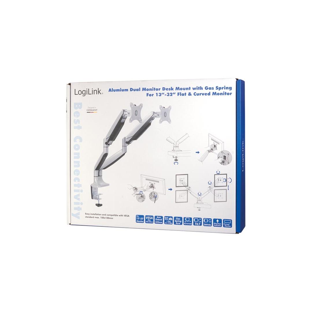 LOGILINK BP0043 LOGILINK - Dual alumium monitor desk mount,13-27, max. 9 kg LOGILINK BP0043 LOGILINK - Dual alumium monitor desk mount,13-27, max. 9 kg
