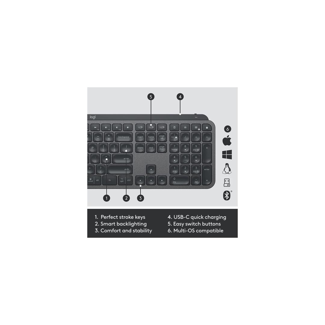 Logitech MX Keys Combo for Business Gen 2 Wireless Keyboard + Mouse +Palm Rest, US Int, Graphite