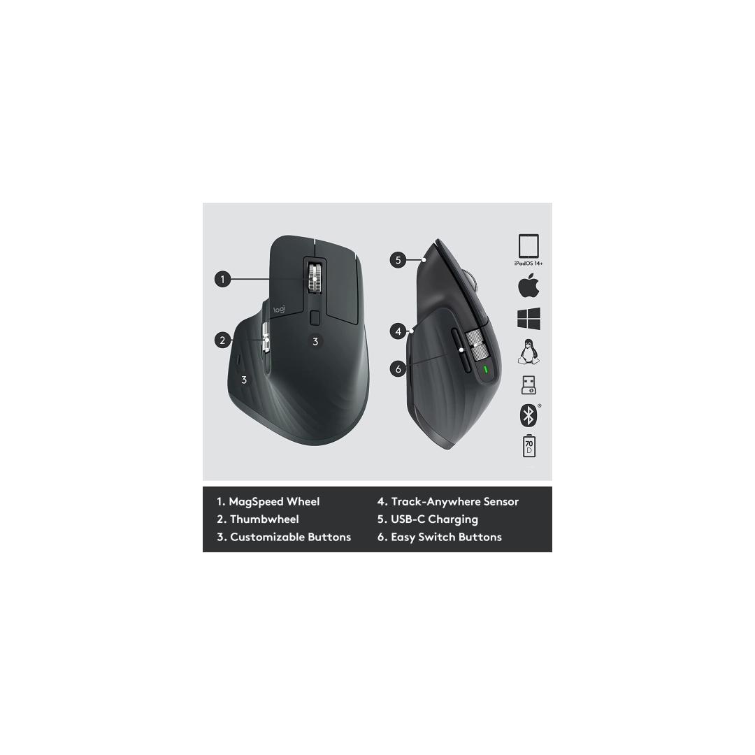 Logitech MX Master 3S for Business Wireless Mouse RF Wireless + Bluetooth, Laser, 8000 DPI, Graphite