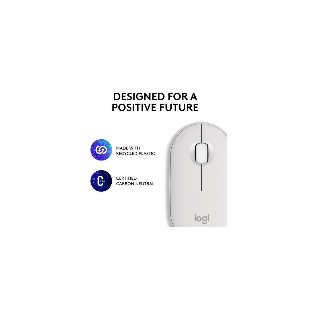 Logitech Pebble 2 M350s Wireless Mouse, RF Wireless + Bluetooth, 4000 DPI, Tonal White