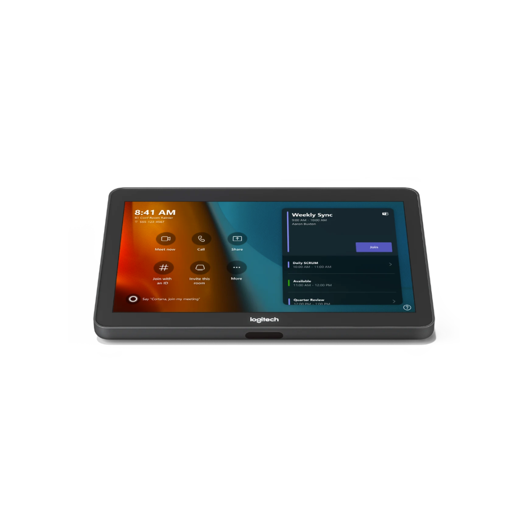 Featuring a 10.1” touchscreen and silent, fan-free design, Logitech Tap connects to the host PC with a 10-meter (32.8 ft) plenum-rated Logitech Strong USB cable. Optimized for the seating layouts and acoustics found in smaller rooms, MeetUp mounts at the display and delivers HD video and clear audio, while RightSight™ auto-framing keeps everyone in the picture.