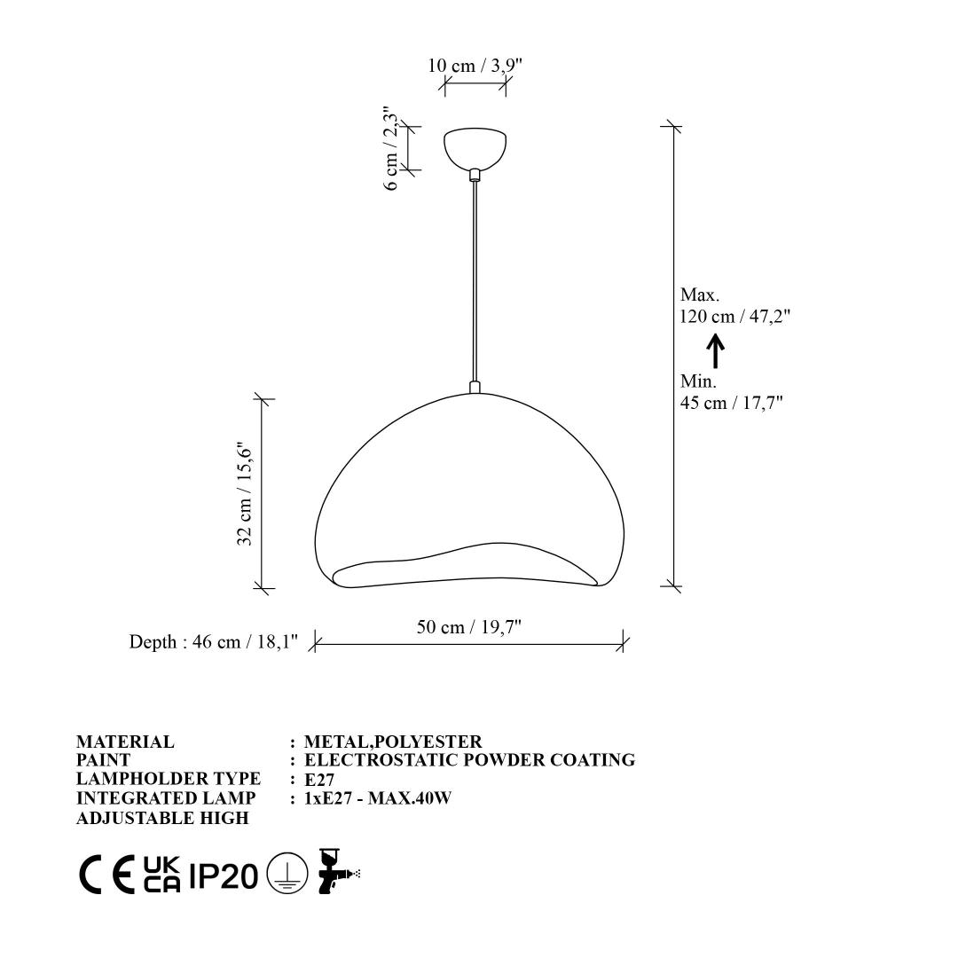 See lühter omab ainulaadset disaini, mille kogukõrgus on reguleeritav vahemikus 45 kuni 120 cm, võimaldades sul kohandada valgustust vastavalt oma ruumi vajadustele. Valge värv lisab puhta ja kaasaegse ilme, mis sobib igasuguse sisustuse stiiliga.