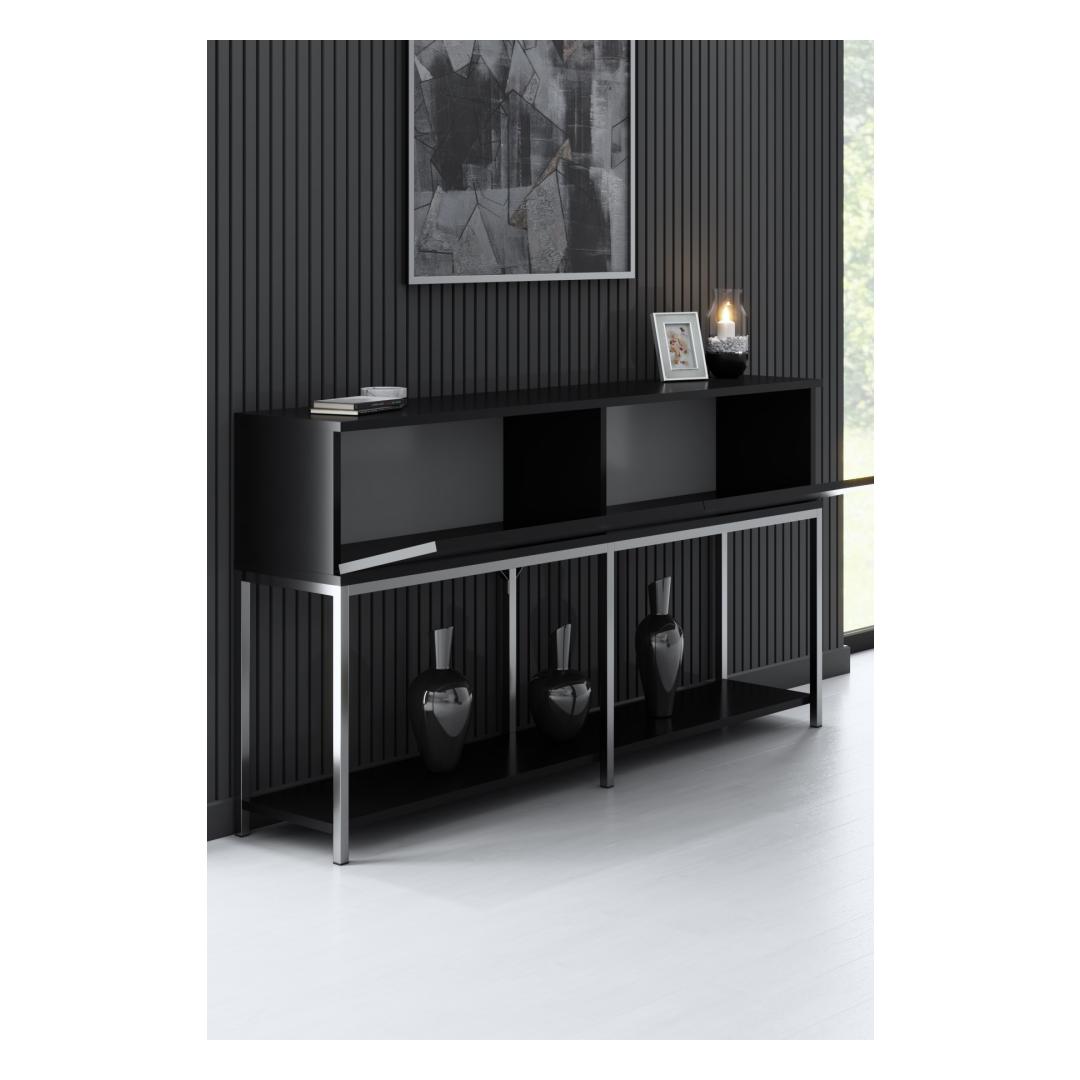Tutvustame meie uimastavat ja mitmekülgset konsooli, tõelist meistriteost, mis tõstab iga ruumi stiili ja funktsionaalsust. Tänu oma elegantsele disainile ja laitmatule käsitööle on see konsool hädavajalik neile, kes hindavad elu peenemaid asju. Vabastage elegantsi jõudAstuge meie konsooliga elegantsi ja rafineerituse maailma. Selle 100% melamiiniga kaetud puitlaastplaadi konstruktsioon tagab vastupidavuse ja pikaealisuse, samas kui 18 mm paksus lisab tugevust, mis peab vastu aja katsumusele. Musta ja hõbedase värvi kombinatsioon loob silmatorkava kontrasti, mis õhkab modernsust ja klassi.Täiuslik segu stiilist ja funktsionaalsusestMeie konsool ei ole mitte ainult visuaalselt nauditav, vaid pakub ka rohkelt hoiuruumi, et hoida oma asjad korrastatult ja käeulatuses. Metallist jalad pakuvad tugevat alust, tagades stabiilsuse ja toe kõigile teie väärtuslikele esemetele. Ükskõik, kas soovite näidata oma lemmikdekoratsiooniesemeid või hoida igapäevaseid esmatarbeid, see konsool on teie jaoks olemas. Muutke oma ruumi, muutke oma eluKujutage ette võimalusi meie konsooliga. See võib olla teie elutoa keskpunkt, mis näitab teie ainulaadset stiilitunnetust. Või võib see olla funktsionaalne lisa teie koridoris, pakkudes mugavat kohta võtmete ja posti hoiustamiseks. Ükskõik, kuhu te selle paigutate, see konsool muudab teie ruumi ilu ja funktsionaalsuse paikseks. Tehnilised üksikasjad:Materjal: Materjal: Materjal: Materjal: Materjal: Materjal: Materjal: Materjal: materjal: 100% melamiiniga kaetud puitlaastplaatPaksus: 18mmMetallist jalad lisavad stabiilsustLaius: 150cmKõrgus: 80cmSügavus: 30cmVärv: must ja hõbedane Värv: Black Silver