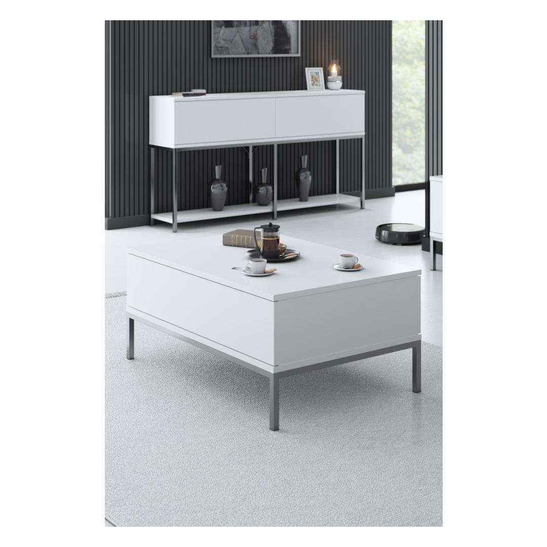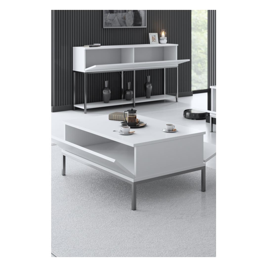 Valge ja hõbedase värvi harmoonilise seguga kohvilaud õhkab ajatut võlu, mis sobib vaevata iga interjööri stiiliga. Kerge ja minimalistlik disain lisab sellele veidi modernsust, muutes selle mitmekülgseks esemeks, mis sobitub sujuvalt igasse eluruumi.
