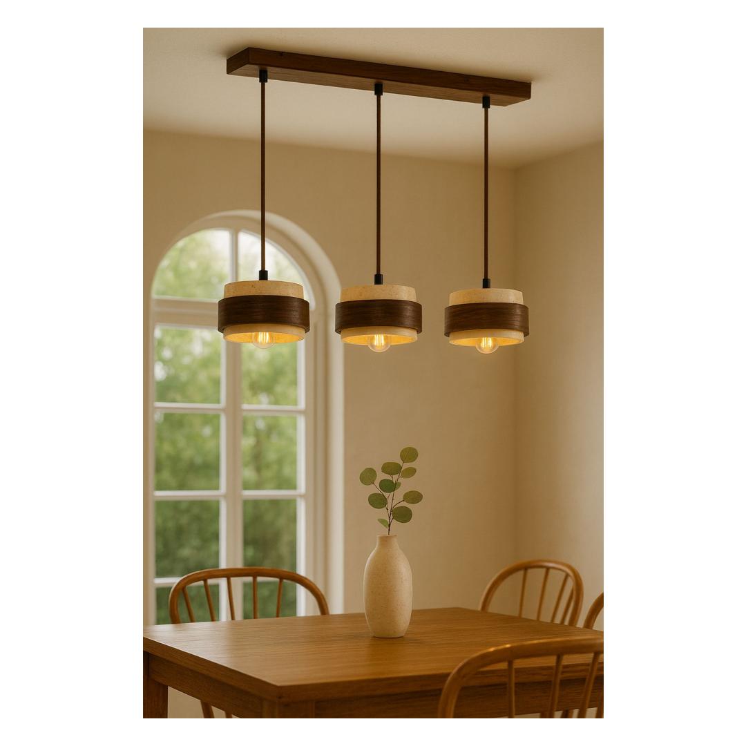 Paranda oma kodu atmosfääri selle hämmastava Puidust Lühtriga, mis ühendab looduslikud elemendid kaasaegse disainiga. Puidu ja travertiini soojad toonid loovad hubase õhkkonna, mis paneb su külalised end teretulnuna ja mugavalt tundma. Ükskõik, kas riputad selle oma söögitoas, elutoas või magamistoas, see lühter tõstab koheselt sinu kodu sisekujundust.
