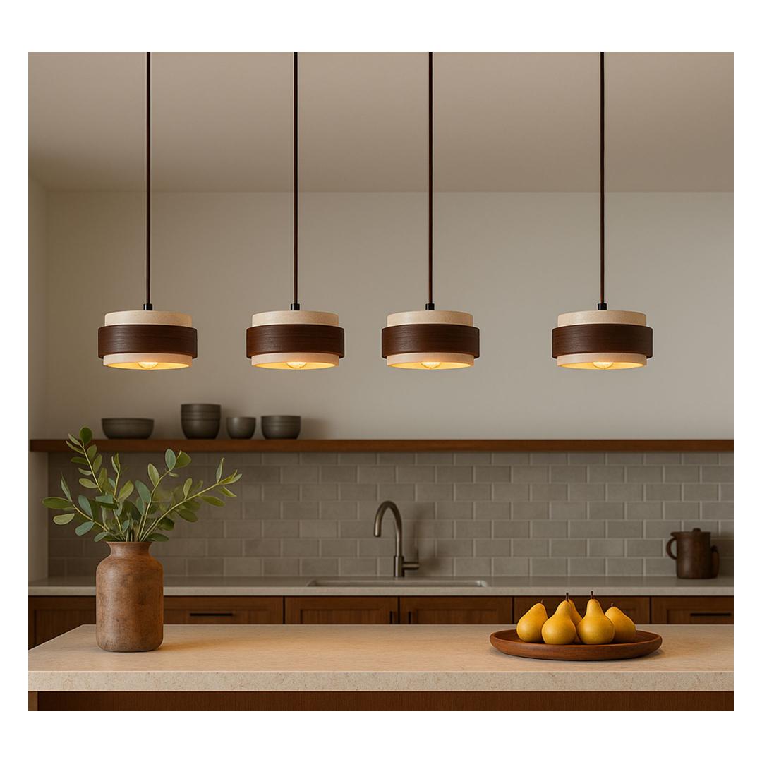 Muuda oma eluruum selle kauni puidust lühtriga. Beezide ja pähklitooni sooja värvitooni koos elegantse travertiini kattega loovad hubase ja kutsuva atmosfääri, mis muudab sinu kodu tõeliseks pühamuks.