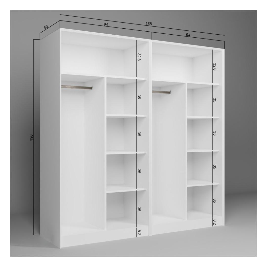 Width: 188 cm Height: 190 cm Depth: 60 cm