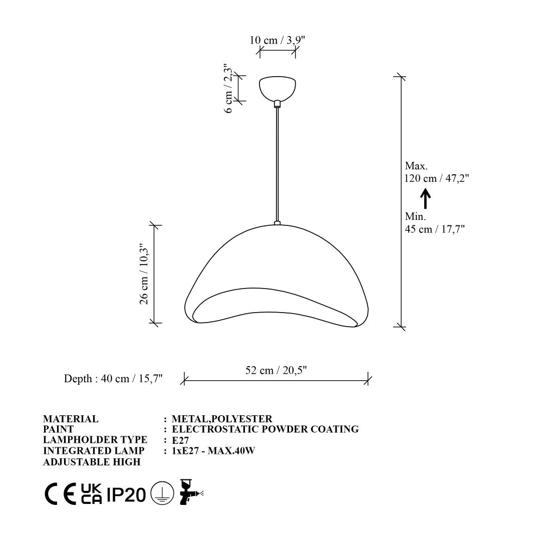 Alusplaadi suurus Ø10 h:6 cm muudab paigalduse lihtsaks, nii et saad oma uut lühtrit nautida kiiresti. Lihtsalt lisa 40W E27 pirn (ei ole kaasas), et valgustada oma ruumi sooja ja kutsuva kuma.