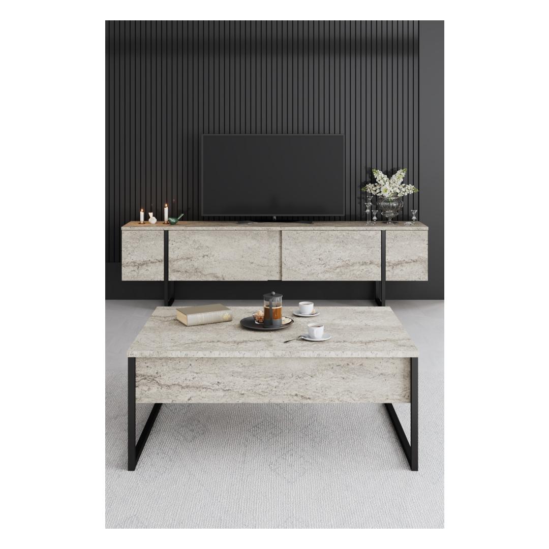 Muutke oma elamispind meie uimastatava kohvilauaga, mis on meisterdatud armastuse ja detailide tähelepanuga. Traverteni ja musta klanitud disain ja moodne värvikombinatsioon tõstavad teie toa ilme kohe, luues teile ja teie külalistele sooja ja kutsuva atmosfääri.