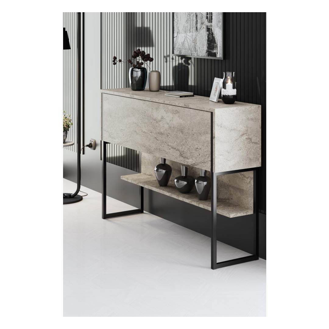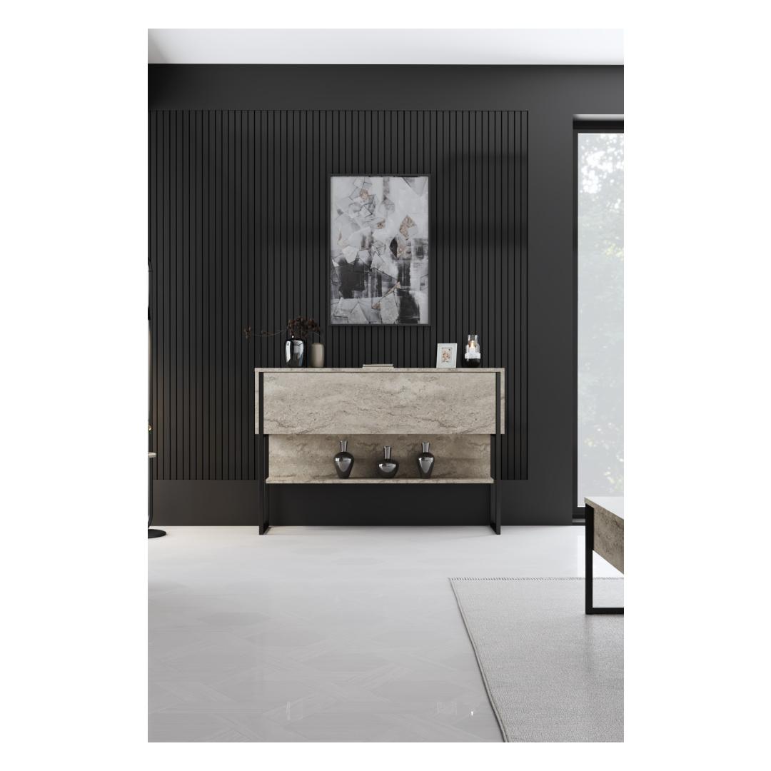 Kummutil on klanitud ja kaasaegne disain, mis lisab igale ruumile keerukust. Traverteni ja musta värvi kombinatsioon loob šiki ja ajatu ilme, mis ei lähe kunagi stiililt välja.