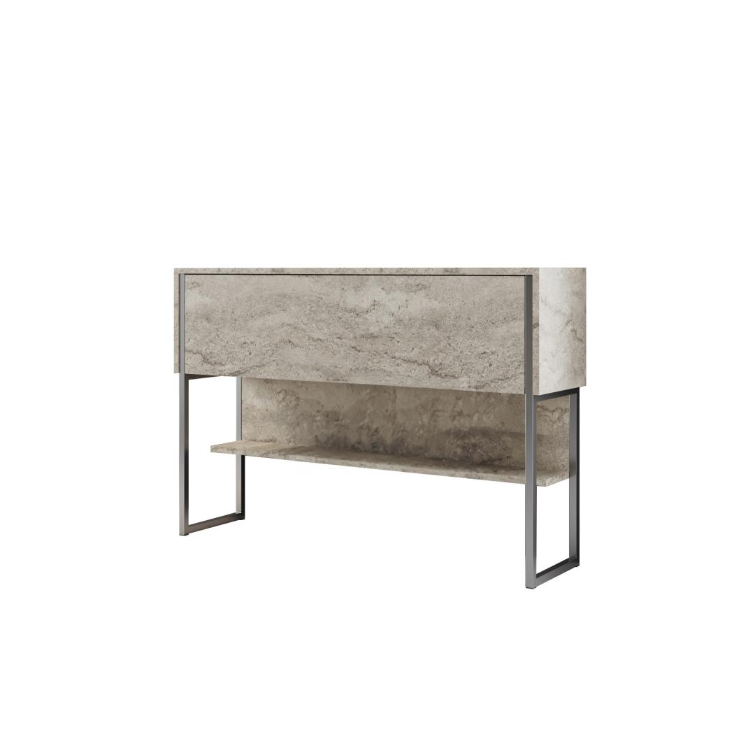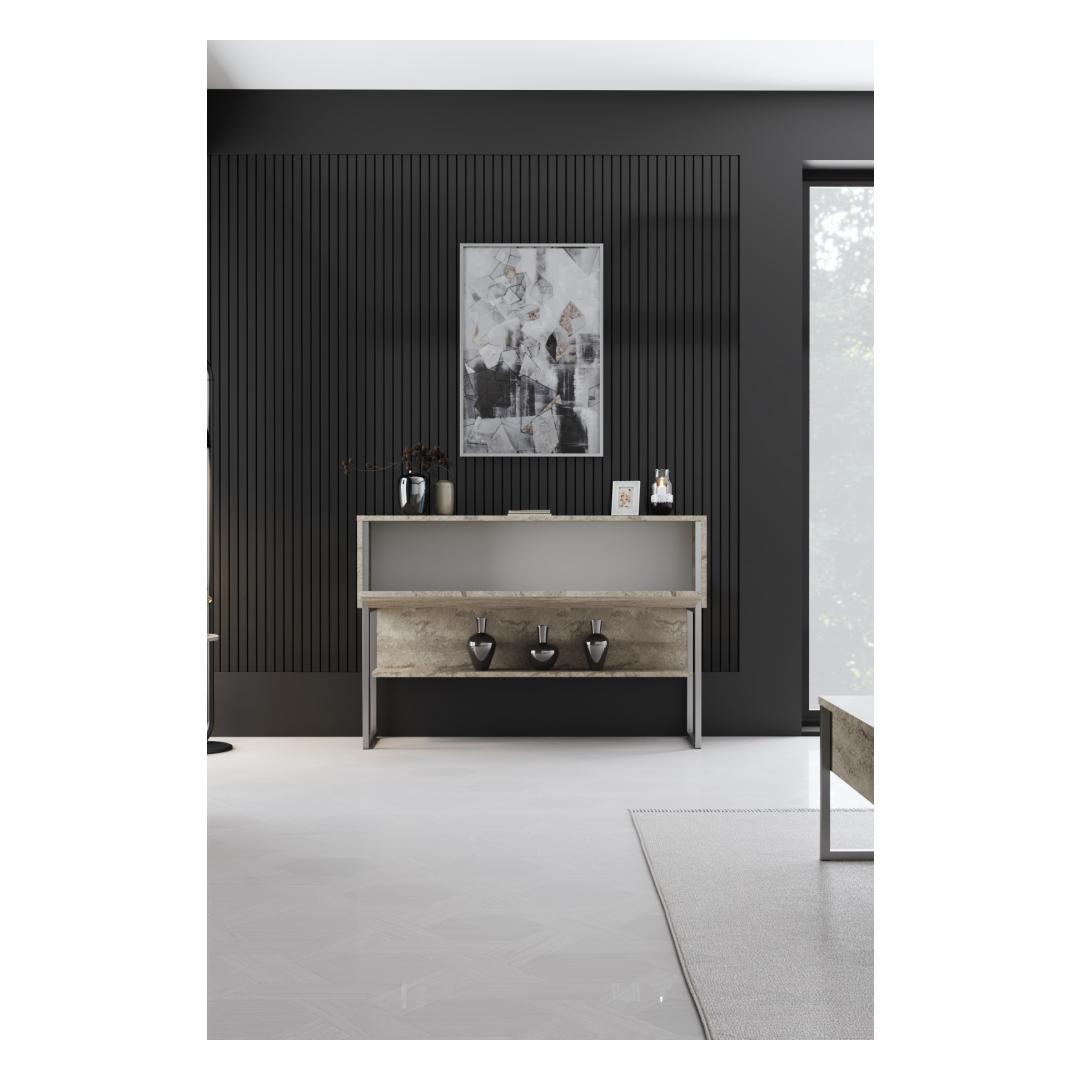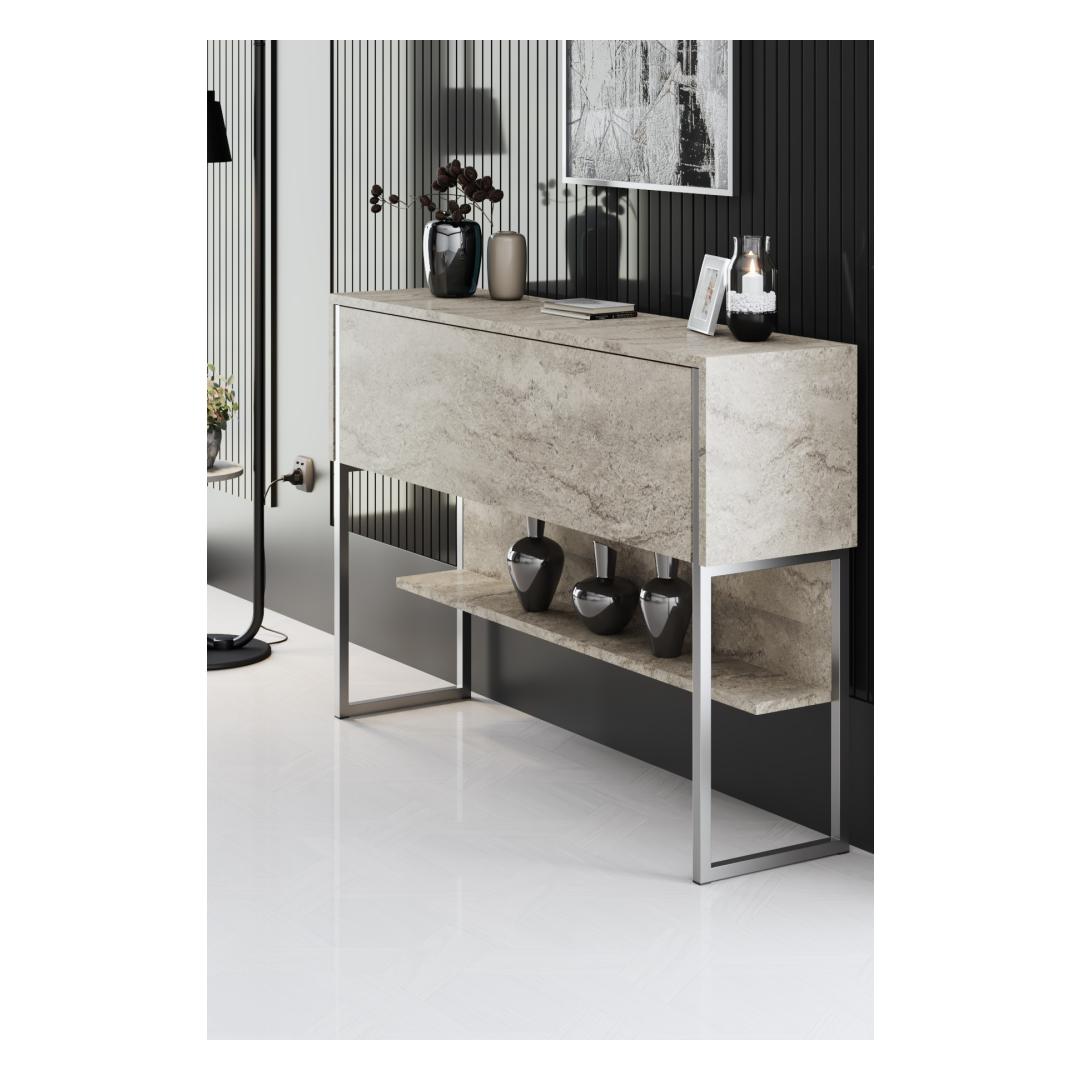 Öelge selle avara kummutiga hüvasti ja tere organisatsioonile. Laiusega 120 cm, kõrgus 80 cm ja sügavusega 30 cm, on palju ruumi kõigi oma oluliste varude hoidmiseks. Traverten ja hõbedane värvikombinatsioon lisab teie tuppa luksust, muutes selle ideaalseks lisaks igale dekoratsioonistiilile.