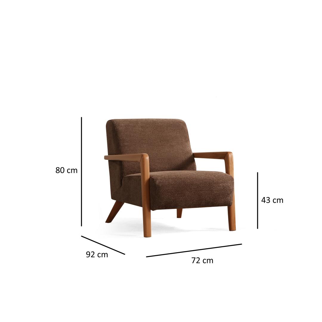 Nautige luksust ja mugavust meie suurepärase tiibtooliga. See vapustav tükk ei ole lihtsalt tool, vaid väljapaistev ese, mis tõstab teie kodu mis tahes ruumi stiili. Rikkalik pruun värvus lisab soojust ja elegantsust, samas kui pöögipuidust ja puitlaastplaadist raam tagab vastupidavuse ja stabiilsuse aastateks. Võrratu mugavus ja tugiUppuge pehmesse 28 dns pehmesse halli vahtpolstrisse ja tundke, kuidas teie mured sulavad ära. Fikseeritud istmepadi ja seljapadi pakuvad võrratut tuge, mistõttu sobib see tool ideaalselt lõõgastumiseks või lemmikraamatu lugemiseks. 24 dns sulged lisavad lisamugavust, muutes selle tooli istumise unistuseks. Ajatu elegantsSelle tooli klassikaline wingback-disain õhkab ajatut elegantsi, samas kui puidust jalad lisavad elegantsi. Olenemata sellest, kas see tool paigutatakse teie elutuppa, magamistuppa või kodukontorisse, tõstab see koheselt iga ruumi stiili. Kergesti hooldatav100% polüesterkangas ei ole mitte ainult luksuslik, vaid ka kergesti puhastatav. Lihtsalt puhastage kangas keemiliselt, et teie tool näeks välja nagu uus. Tehnilised üksikasjad:Raam: Puit: Pöögipuit / puitlaastplaatKangas: Materjal: 100% polüesterMõõdud: Pikkus: 72 cm, laius: 92 cm, kõrgus: 80 cm.Vaht: 28 DNS pehme hall vaht / 24 DNS sulegaFikseeritud istmepadi / seljapadiKuivpuhastatav kangasJalad: Puidust jaladVärv: pruun Värv: Brown
