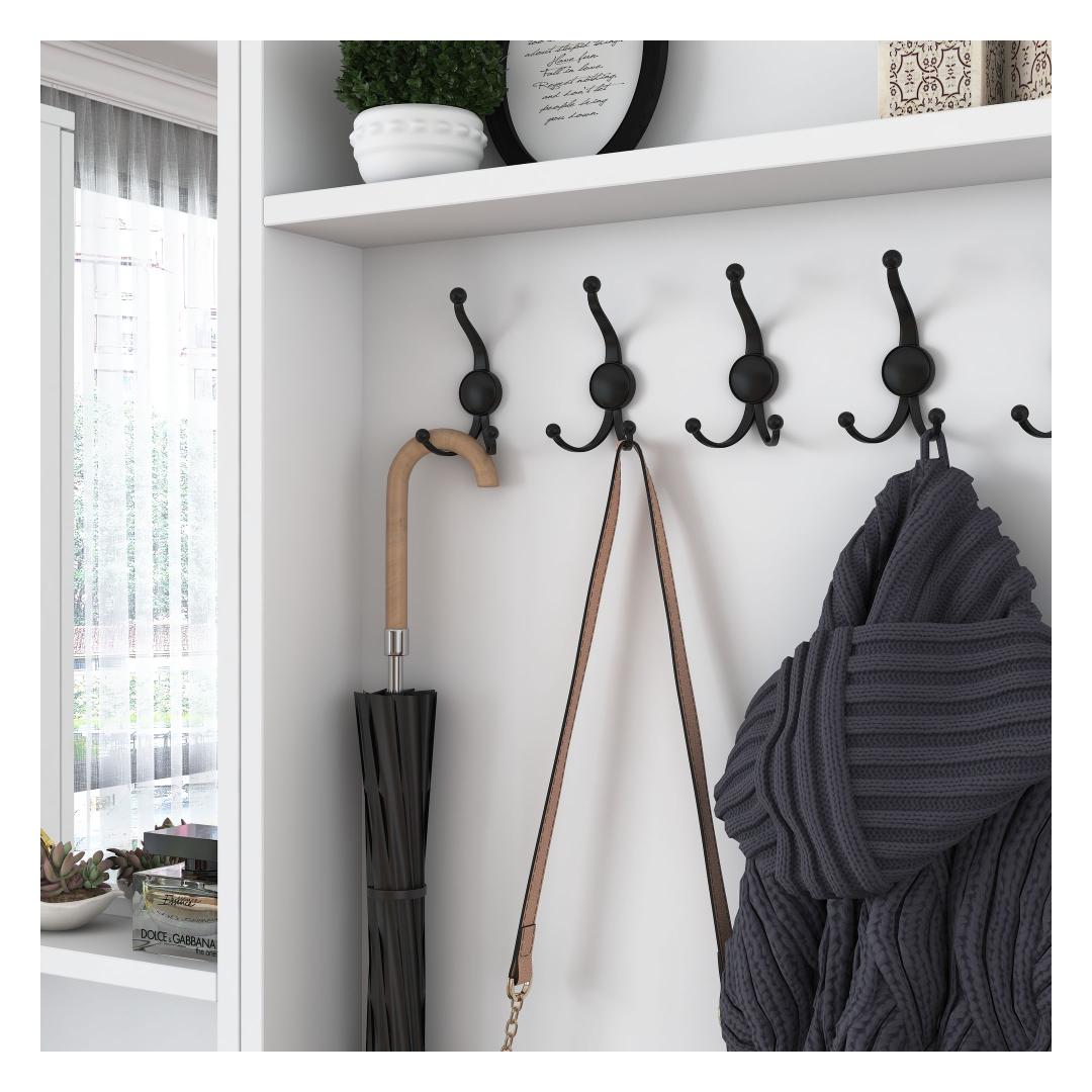 See koridori statiiv, millel on avar sahtli, arvukad riiulid ja mitmeotstarbeline ripphoidik, pakub rohkelt hoiuruumi kõigile teie hädavajalikele asjadele. Hoidke oma võtmed, posti ja muud asjad korrastatult ja hõlpsasti kättesaadavana.