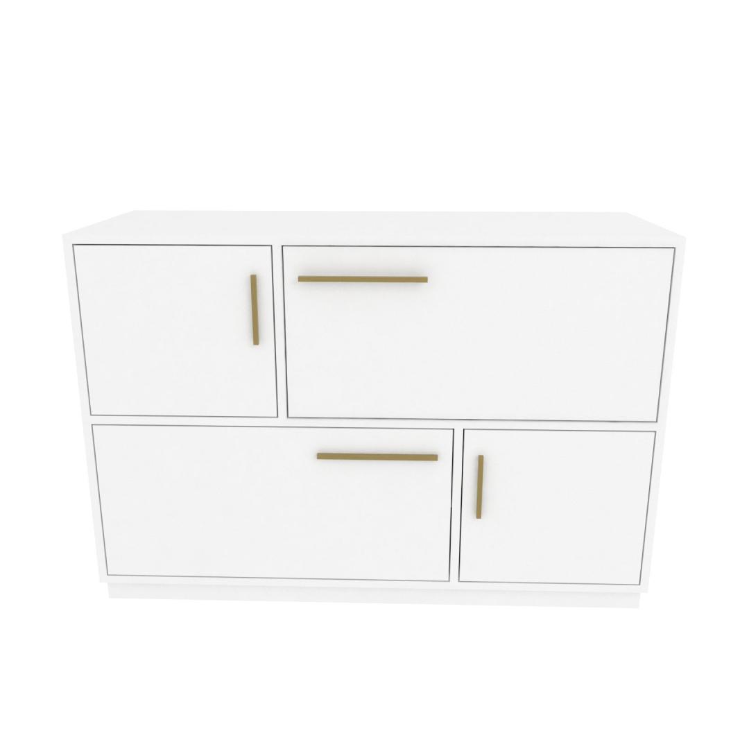 Meie konsool on valmistatud ülima hoole ja täpsusega, kasutades 100% melamiiniga kaetud puitlaastplaati. See tagab vastupidavuse ja pikaealisuse, mis võimaldab teil nautida selle ilu aastaid. Ühevärviline kontseptsioon lisab lihtsust, samas kui valge värvus õhkab puhtust ja rahulikkust, luues teie kodus rahulikku atmosfääri.