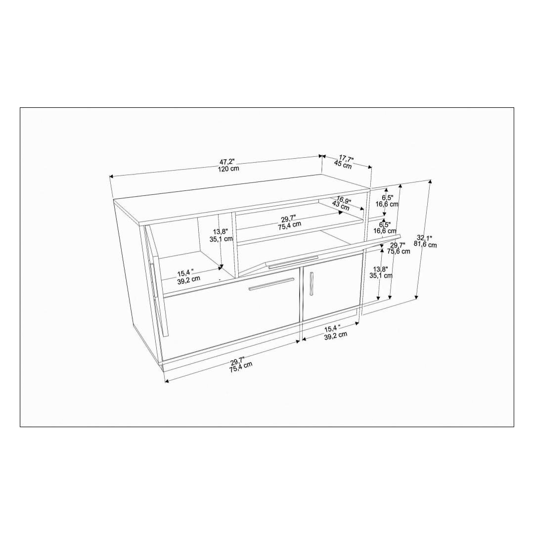 Laius 120 cm, sügavus 45 cm ja kõrgus 81 cm. 6cm, pakub see konsool piisavalt ruumi kõigi oluliste asjade hoidmiseks. Alates raamatutest ja ajakirjadest kuni dekoratiivsete esemete ja elektrooniliste seadeteni saate hoida kõike organiseeritult ja käeulatuses.