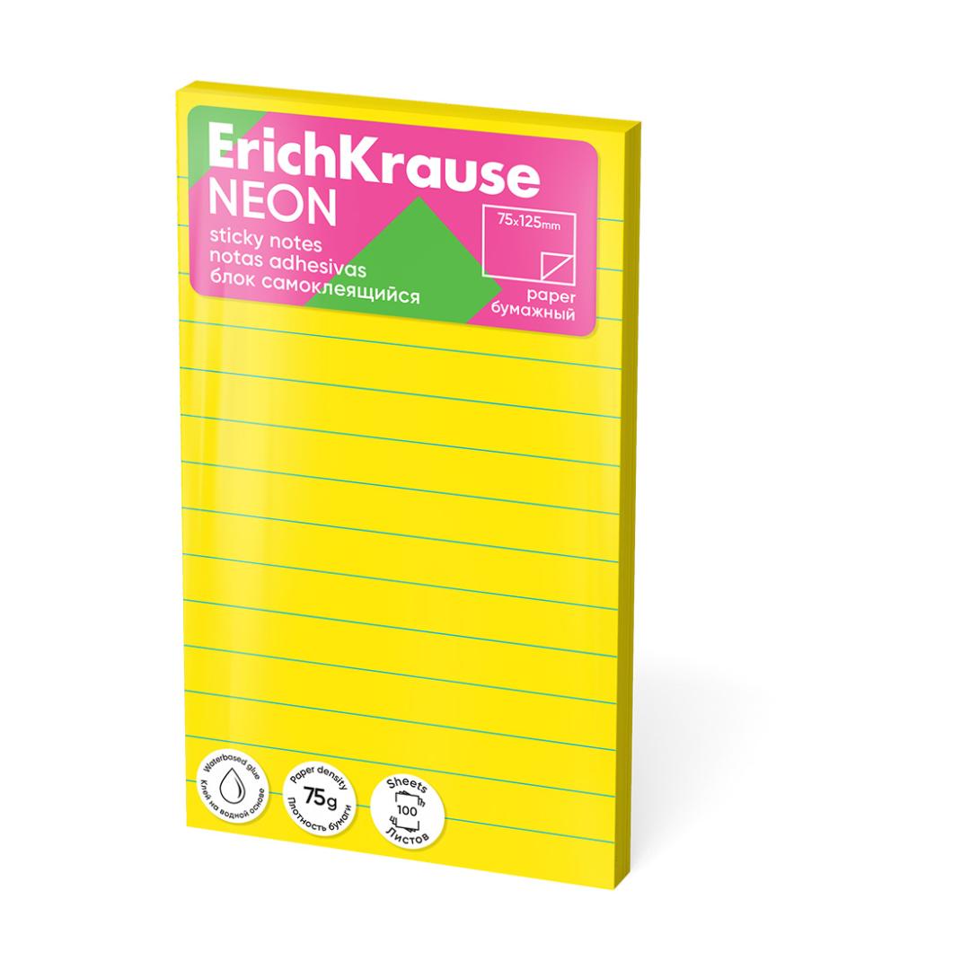 Märkmepaber 75x125mm ERICH KRAUSE Neon jooneline 100 lehte neoon värvid