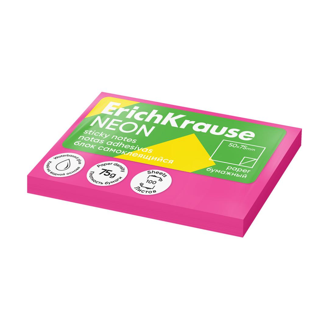 Märkmepaber ERICH KRAUSE Neon, 50х75 mm, 100 lehte, roosa