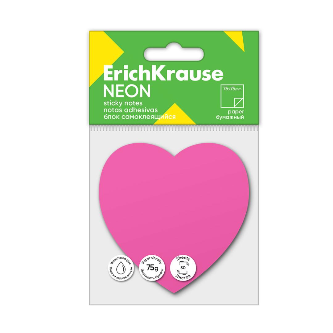 Märkmepaber ERICH KRAUSE Neon, Heart, 75х75 mm, 50 lehte, roosa