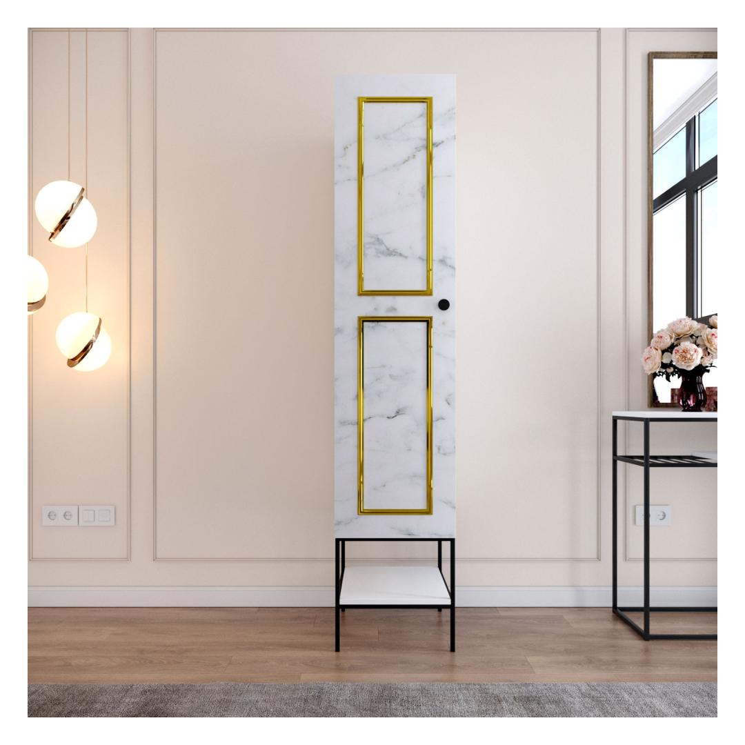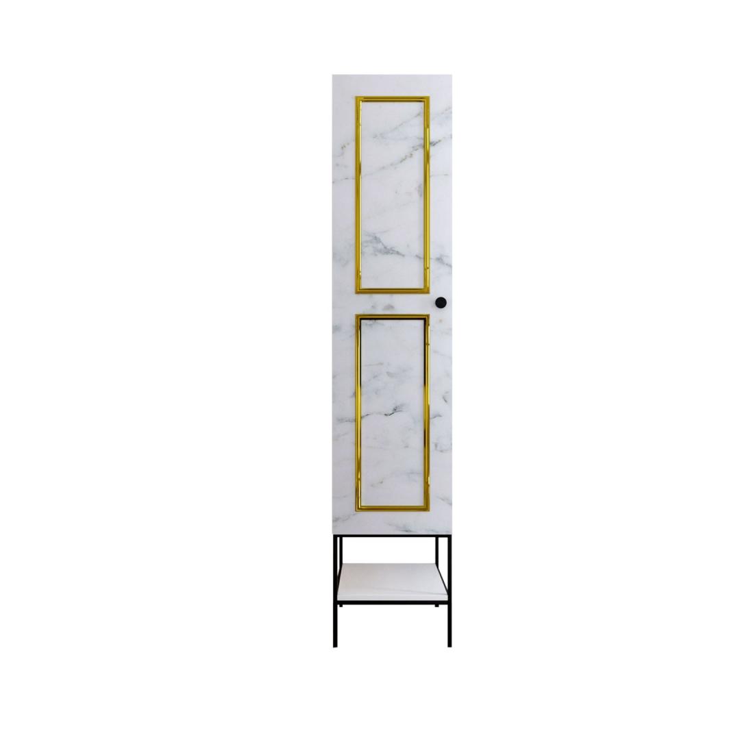 Koosta glamuuri meie uimastava garderoobigaMuuda oma magamistuba luksuslikuks pelgupaigaks meie suurepärase glamuurse garderoobiga. See garderoob on loodud kütkestama ja inspireerima ning on elegantsi ja rafineerituse kehastus. Selle elegantne ja kaasaegne disain tõstab koheselt iga ruumi esteetikat, muutes selle täiuslikuks täienduseks teie kodule.Võrratu kvaliteet ja vastupidavusMeie ülima täpsusega valmistatud glamuurne garderoob on valmistatud 100% melamiiniga kaetud puitlaastplaadist. See tagab erakordse vastupidavuse ja pikaealisuse, mis võimaldab teil nautida selle ilu aastaid. 18 mm paksus lisab tugevust ja stabiilsust, pakkudes usaldusväärset hoiulahendust teie asjadele. Rikkalik hoiuruumÜtle hüvasti segastele ruumidele ja tere organiseeritud õndsusele. Meie glamuurne garderoobikapp pakub arvukalt riiuleid, mis pakuvad piisavalt hoiuruumi kõigile teie riietele, aksessuaaridele ja muule. Alates kleitidest kuni kingadeni on kõigel oma kindel koht, mis muudab vajaliku leidmise lihtsamaks, kui seda vajate. Esteetiliselt meeldiv disainValge, musta ja kuldse värvi kombinatsioon loob visuaalselt uimastava eseme, mis õhkab glamuuri ja rafineeritust. Kontrastsed värvid lisavad sügavust ja mõõdet, muutes selle garderoobi tõeliseks väljapaistvaks esemeks igas ruumis. Selle elegantne ja moodne disain sulandub vaevata erinevate interjööristiilidega, lisades teie ruumile luksust. Tehnilised üksikasjad:Materjal: Materjal: Materjal: Materjal: Materjal: Materjal: Materjal: Materjal: materjal: 100% melamiiniga kaetud puitlaastplaatPaksus: 18mmLaius: 42cmKõrgus: 200cmSügavus: 50cmVärv: valge, must ja kuldneHellitage meie glamuurse garderoobi külluslikkust ja kogege rõõmu tõeliselt tähelepanuväärse mööblieseme omamisest. Tõsta oma ruumi esile ja omaks glamuuri juba täna! Värv: White Black Gold