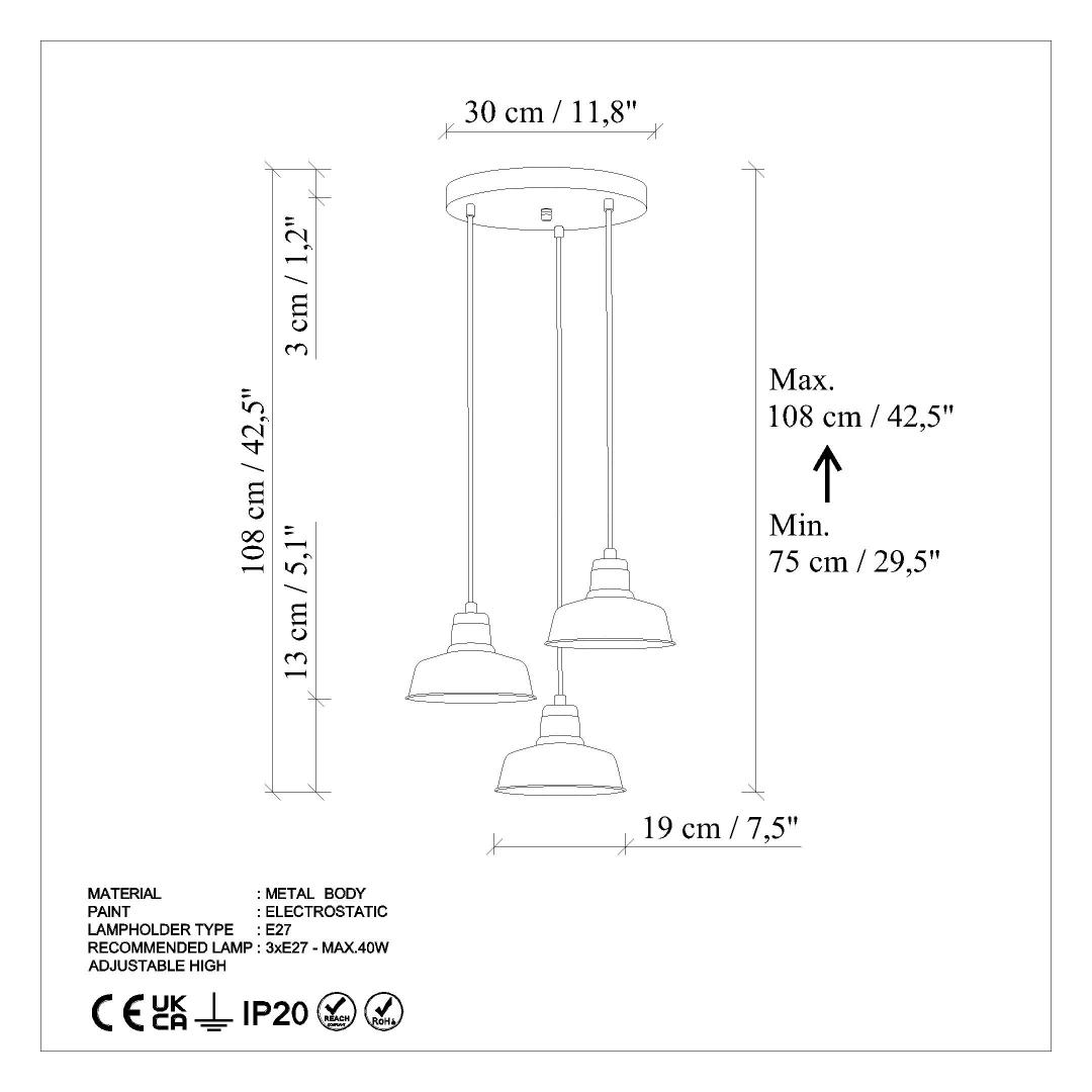 Muuda oma eluruum meie uimastava metallist lühtriga. See peen tükk lisab elegantsust ja elegantsust igasse ruumi, luues sooja ja kutsuva atmosfääri, mis meeldib teile ja teie külalistele. Tõstke oma kodu kaunistustTehke avaldus selle kauni lühtriga, millel on metallist korpus ja antiikvärv(id), mis täiendab mis tahes stiilis sisustust. Reguleeritav kõrgus võimaldab teil kohandada välimust nii, et see sobiks ideaalselt teie ruumiga, samas kui elegantse disainiga lisab igale ruumile kaasaegse puudutuse. Loo soe ja kutsuv õhkkondValgustage oma kodu selle lühtri pehme ja sooja säraga. Olenemata sellest, kas korraldate õhtusöögi või lõõgastute hea raamatuga, loob see lummav valgusti täiusliku atmosfääri igaks juhuks. Tehnilised üksikasjad:Läbimõõt: 45 cmKaane suurus: 1,5 mm: Suurus: Ø19 h:13 cmKogukõrgus: 75 - 108 cmAlusplaadi suurus: Ø30 h:3 cmKaabli pikkus: 90 cmPistikupesa tüüp: 3 x E 27 Max 40 WPirn ei kuulu komplekti220-240 VIP-kood: IP20Värv: Antiikvärv(id) Värv: Antiquation
