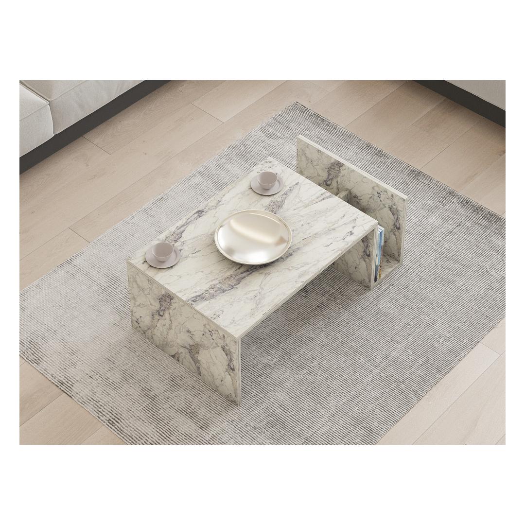 Muuda oma elutuba meie vapustava freesia marmorist kohvilaudaga. See elegantne ese ei ole lihtsalt laud, vaid stiili ja rafineerituse avaldus. 100% melamiiniga kaetud puitlaastplaat tagab vastupidavuse ja pikaealisuse, nii et saate seda kaunist eset nautida aastaid.