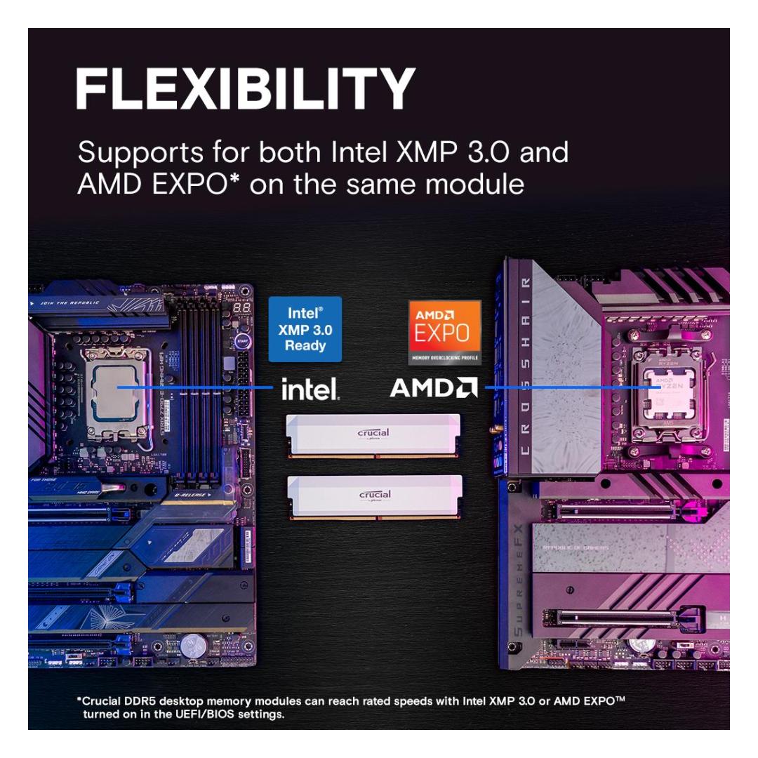 - Support for both Intel XMP 3.0 and AMD EXPO™ on the same module