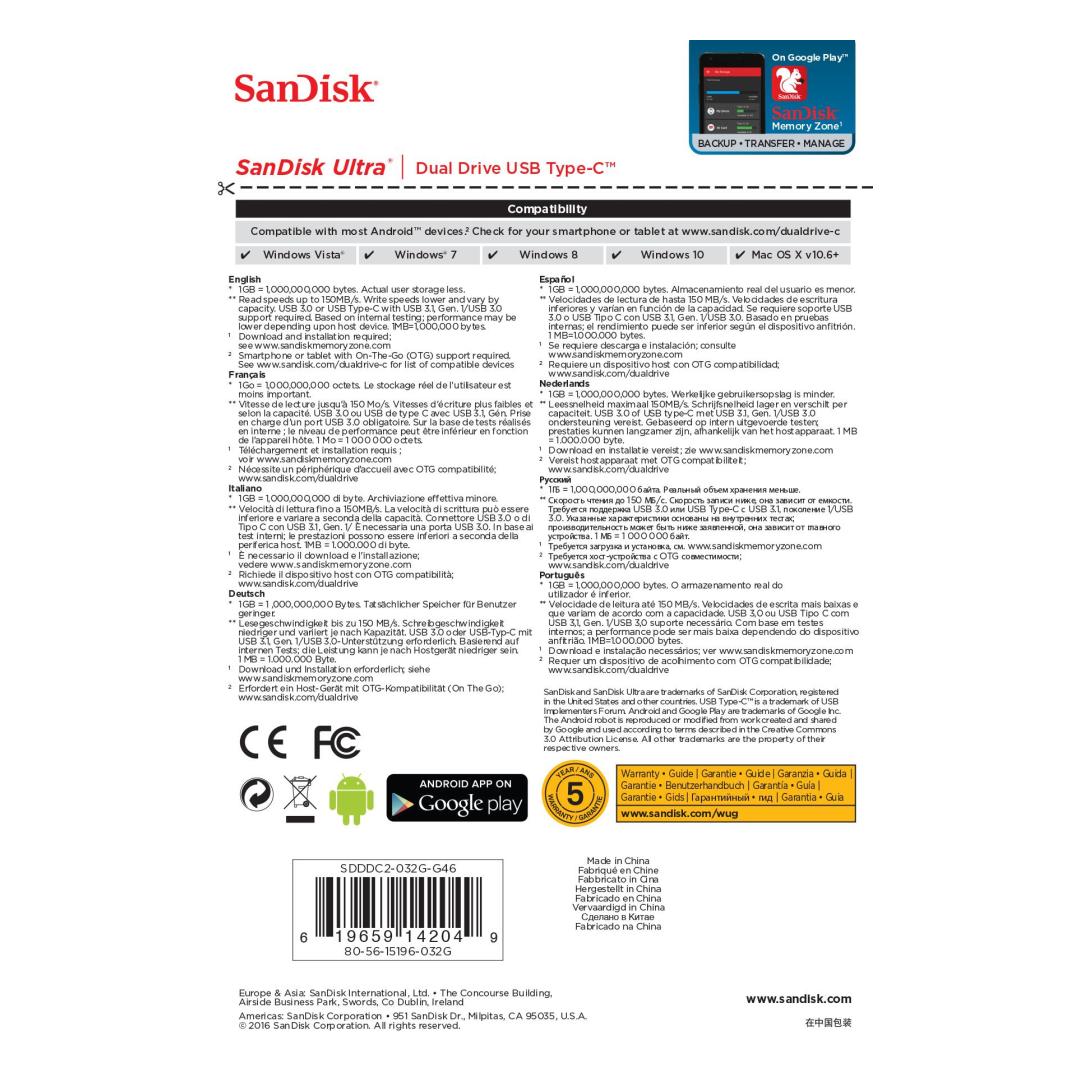 MEMORY DRIVE FLASH USB-C 32GB/SDDDC2-032G-G46 SANDISK