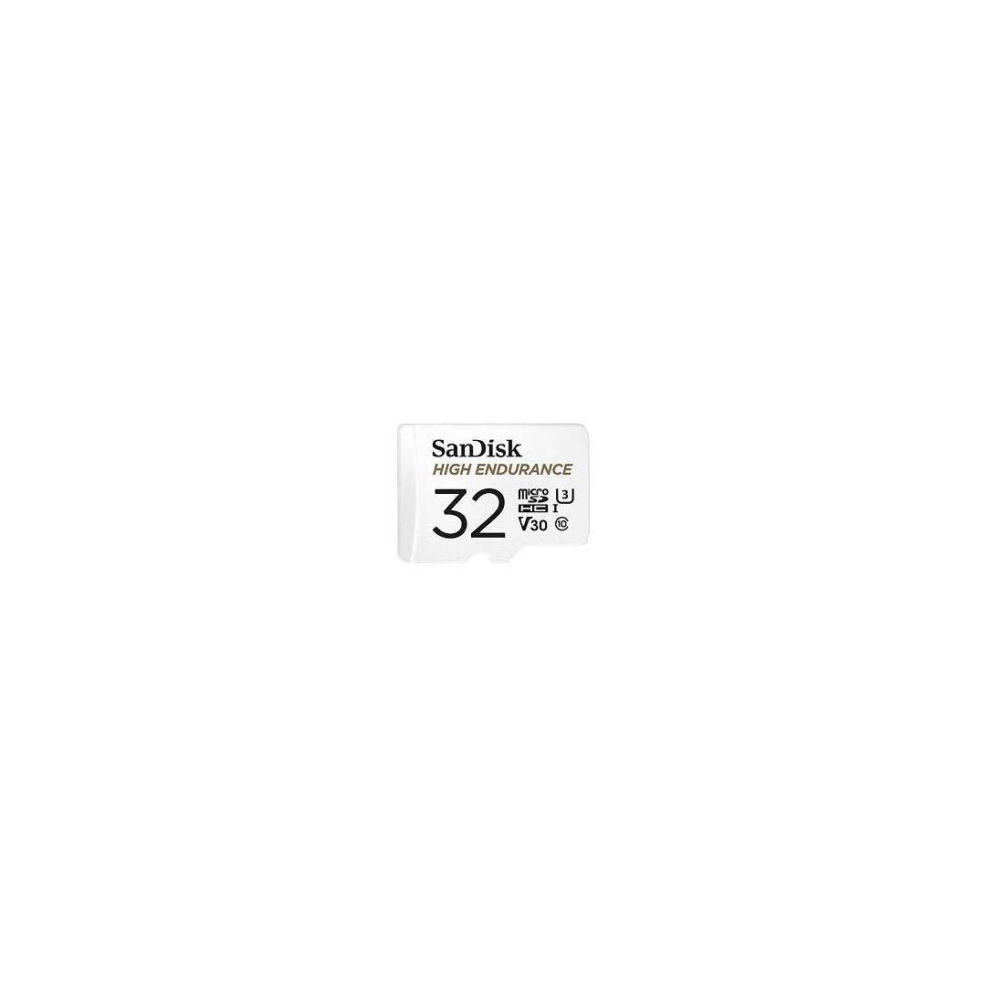 SanDisk High Endurance. Capacity: 32 GB, Flash card type: MicroSDHC, Flash memory class: Class 10, Internal memory type: UHS-I, Read speed: 100 MB/s, Write speed: 40 MB/s, UHS Speed Class: Class 3 (U3), Video Speed Class: V30. Protection features: Shock resistant, Temperature proof, Waterproof, Product colour: White
