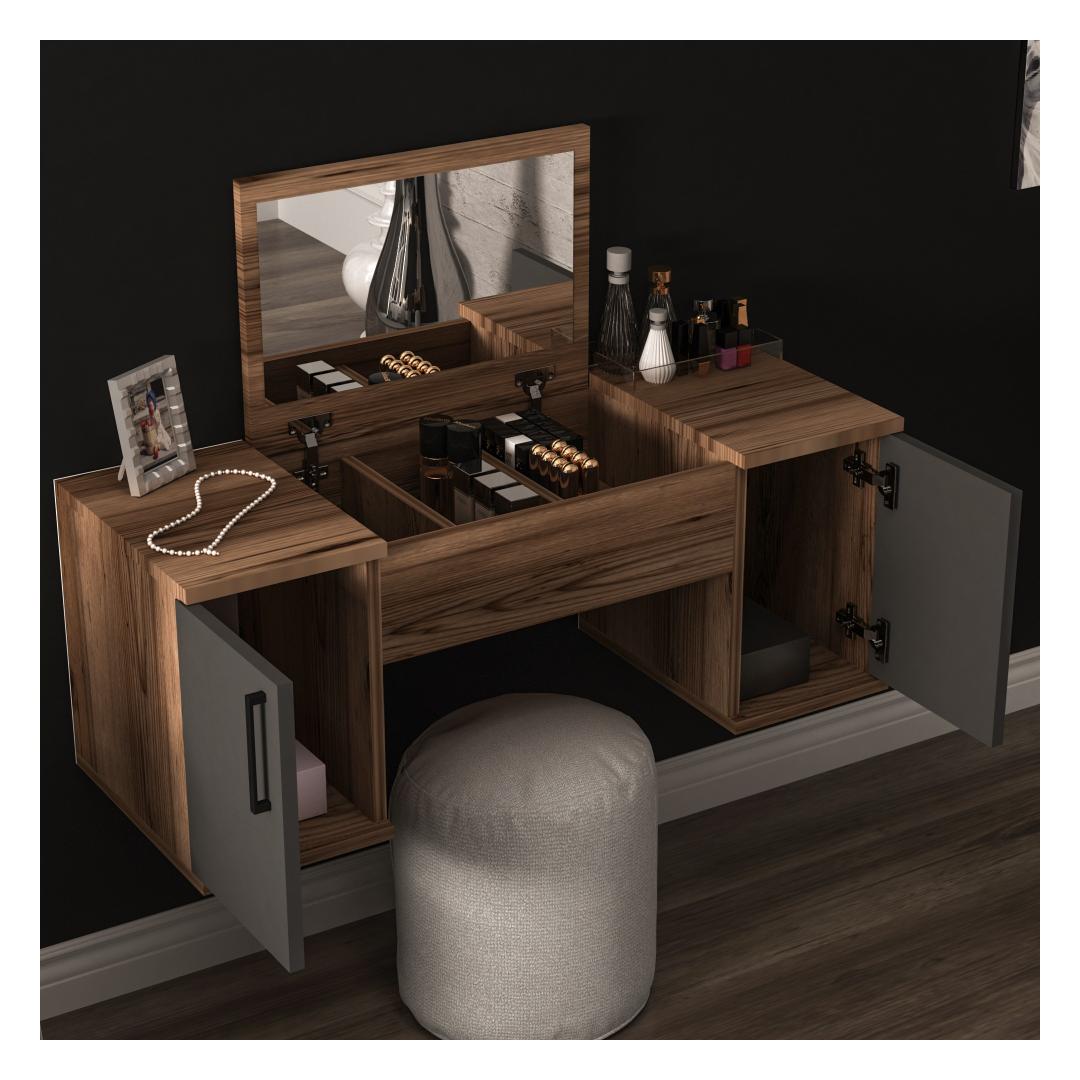 Muuda oma hommikurutiin meie kauni meigilaudaga, mis on loodud armastuse ja detailidele tähelepanu pööramisega. Sujuv disain ja elegantne värvikombinatsioon Hele Pähkel ja Antratsiit lisavad igasse ruumi peenust.