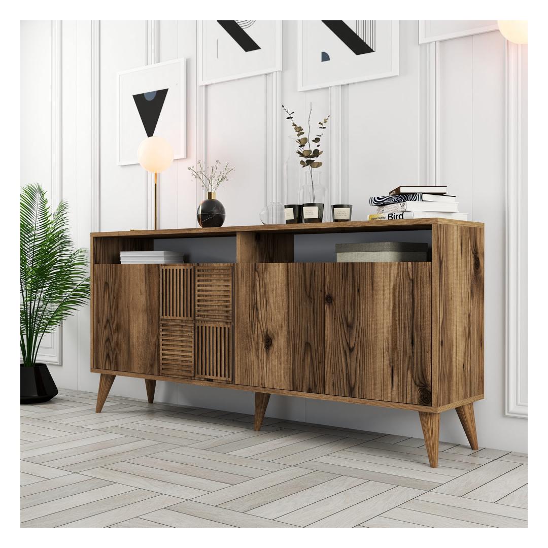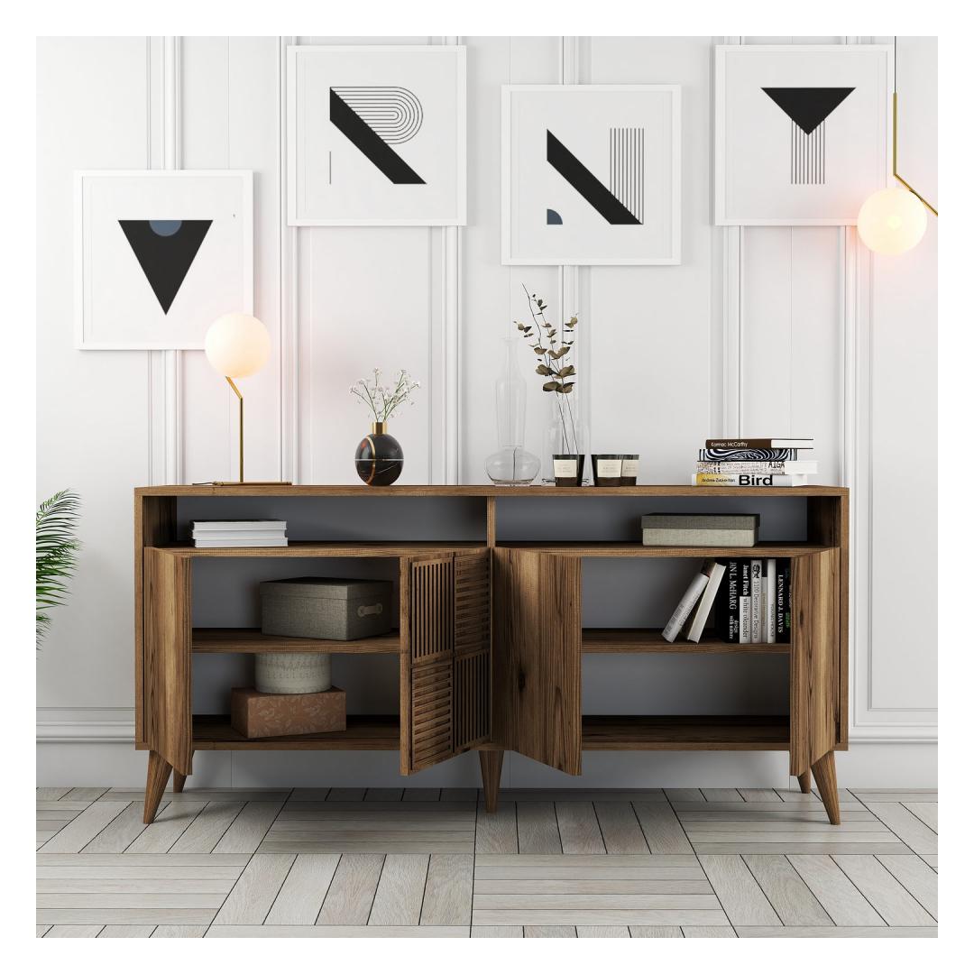 Pähklipuu värvi sümfoonia kaunistab seda konsooli, mis õhkab soojust ja elegantsi, mis muudab teie toa koheselt rahulikuks. Pähklipuu rikkalikud ja sügavad toonid loovad lummava visuaalse atraktiivsuse, mis jätab teie külalised imestama.