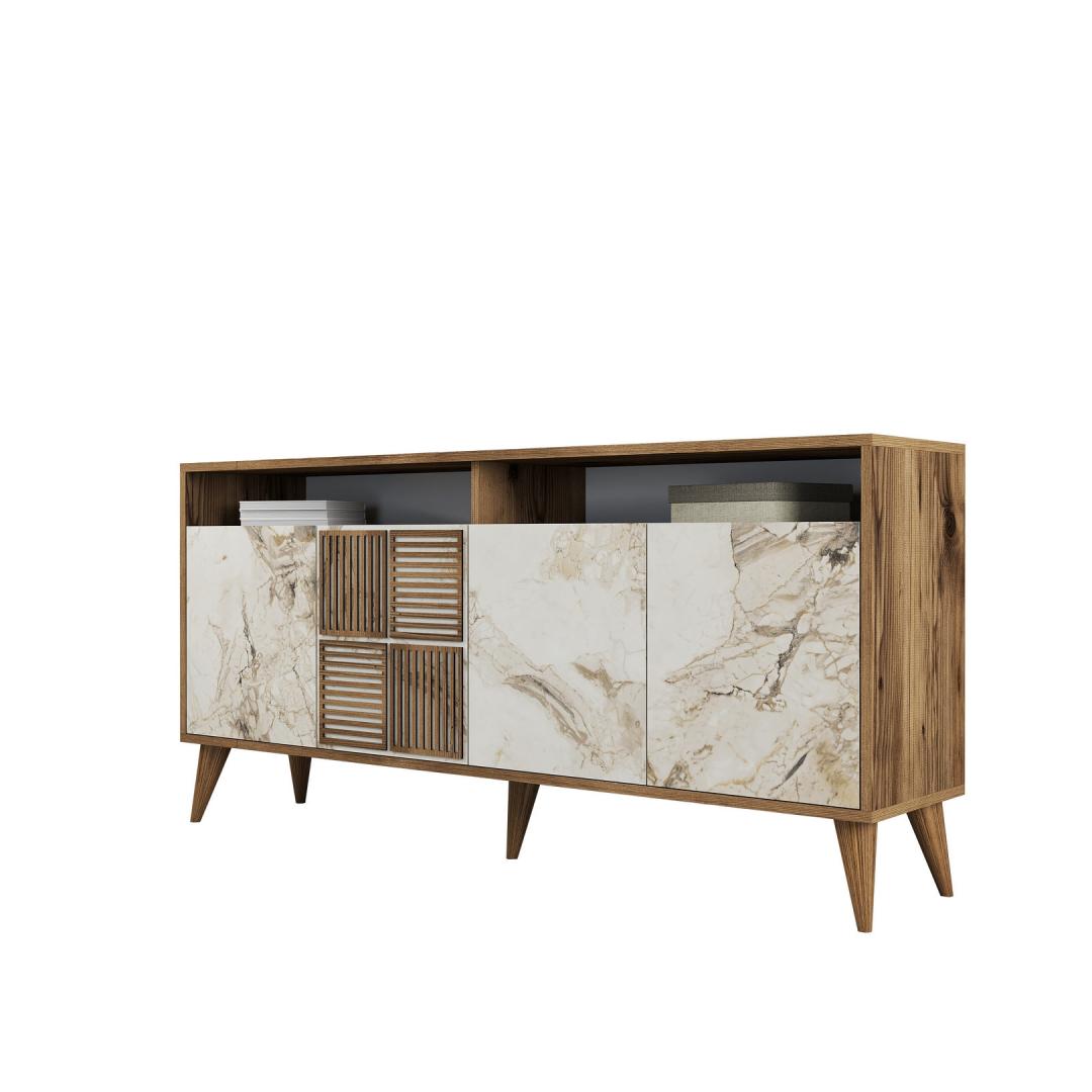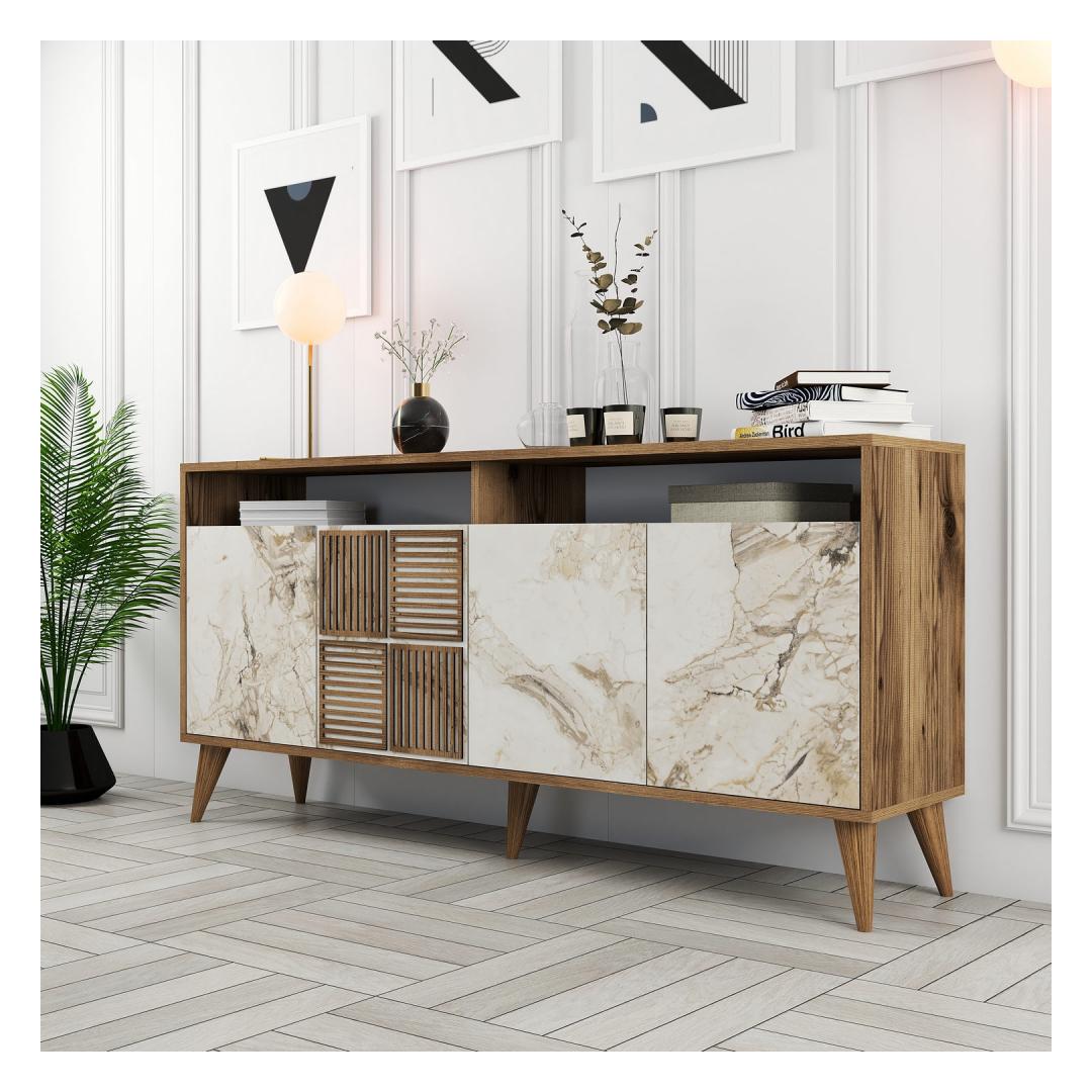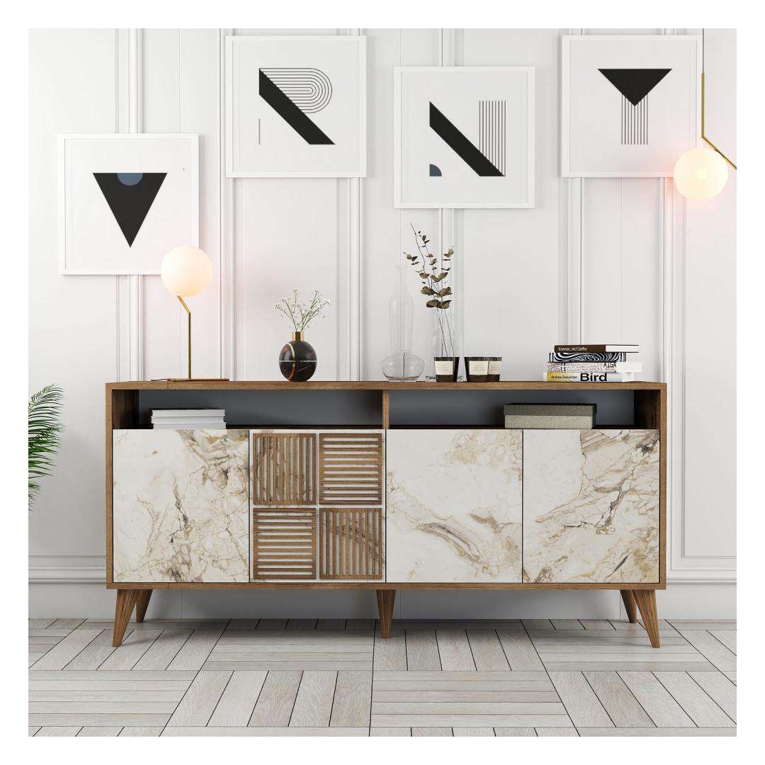 Pähklipuu ja valge marmori värvide kombinatsioon annab sellele konsoolile ainulaadse ja rafineeritud välimuse. Antratsiitne ühevärvilisus lisab elegantsi, samas kui kaasaegne uudne kontseptsioon lisab kaasaegset väänet. See konsool ei ole lihtsalt mööblitükk, vaid statement-teos, mis tõstab teie eluruumi üldist esteetikat.