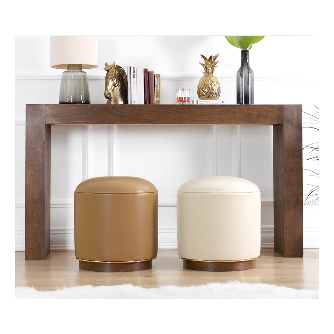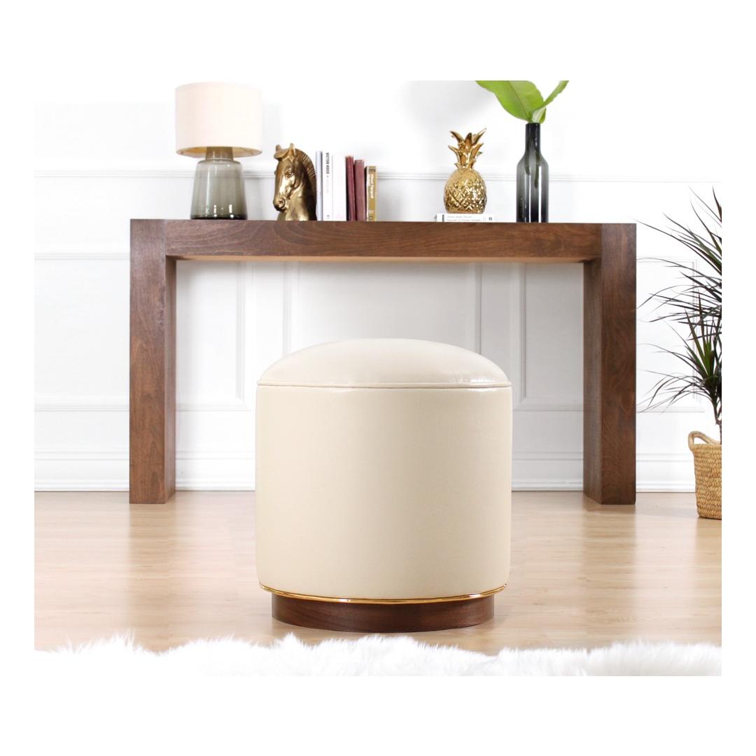 Muuda oma eluruum luksusliku kreemja kunstnahast poufega. See hämmastav ese kiirgab elegantsi ja rafineeritust, lisades igasse ruumi glamuurset puudutust. Pehme kunstnahk on mitte ainult stiilne, vaid ka äärmiselt vastupidav, tagades pikaajalise ilu sinu kodus.Tõsta oma sisekujundustOlgu su stiil boheemlaslik, glamuurne, hotellilik või Skandinaavia, see pouf on ideaalne täiendus sinu sisekujundusele. Selle voolujooneline disain ja neutraalne kreemivärv muudavad selle piisavalt mitmekülgseks, et sobida igasse stiili. Aseta see oma elutuppa šikiks jalatoeks või kasuta seda lisakohtadena külalistele.Ületamatu mugavus35 DNS ortopeediline vahtmaterjal pakub võrreldamatut mugavust, muutes selle poufi ideaalseks kohaks, kus jalad üles tõsta ja pärast pikka päeva lõõgastuda. Puitjalad lisavad soojust ja rafineeritust, tõstes kogu eseme välimust.Kvaliteetne käsitööDetailidele tähelepanu pöörates valmistatud see pouf omab laminaat- ja villakate tagapinda, et tagada lisakindlus. Sa saad usaldada, et see ese on loodud kestma, pakkudes sulle aastaid naudingut ja stiili.Tehnilised andmed:Materjal: 100% kunstnahkTagapind: Laminaat ja villaneJalad: PuitVaht: 35 DNS ortopeedilineSuurus: Kõrgus 43 cm, Sügavus 42 cmVärv: Kreem Värv: Cream