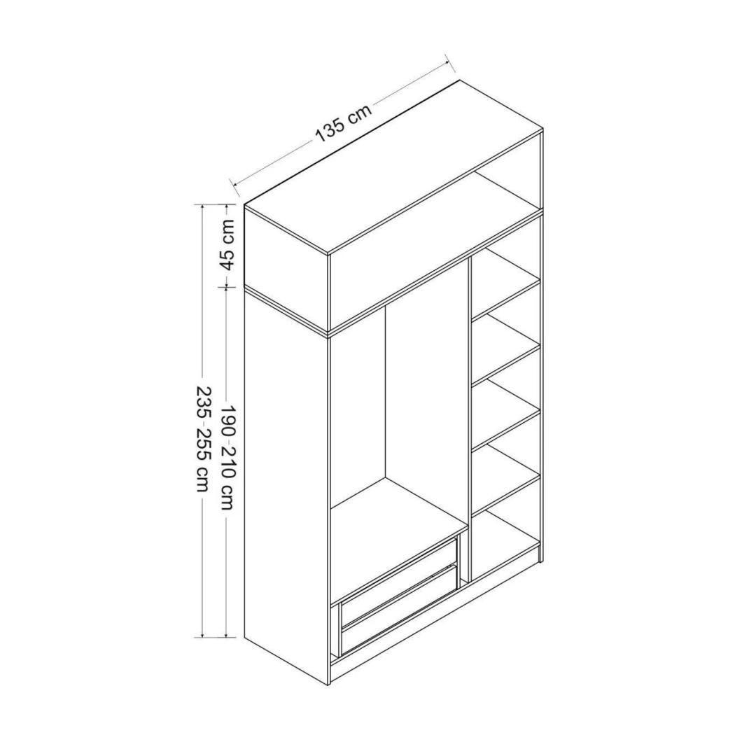 Width: 135 cm Height: 255 cm Depth: 52 cm