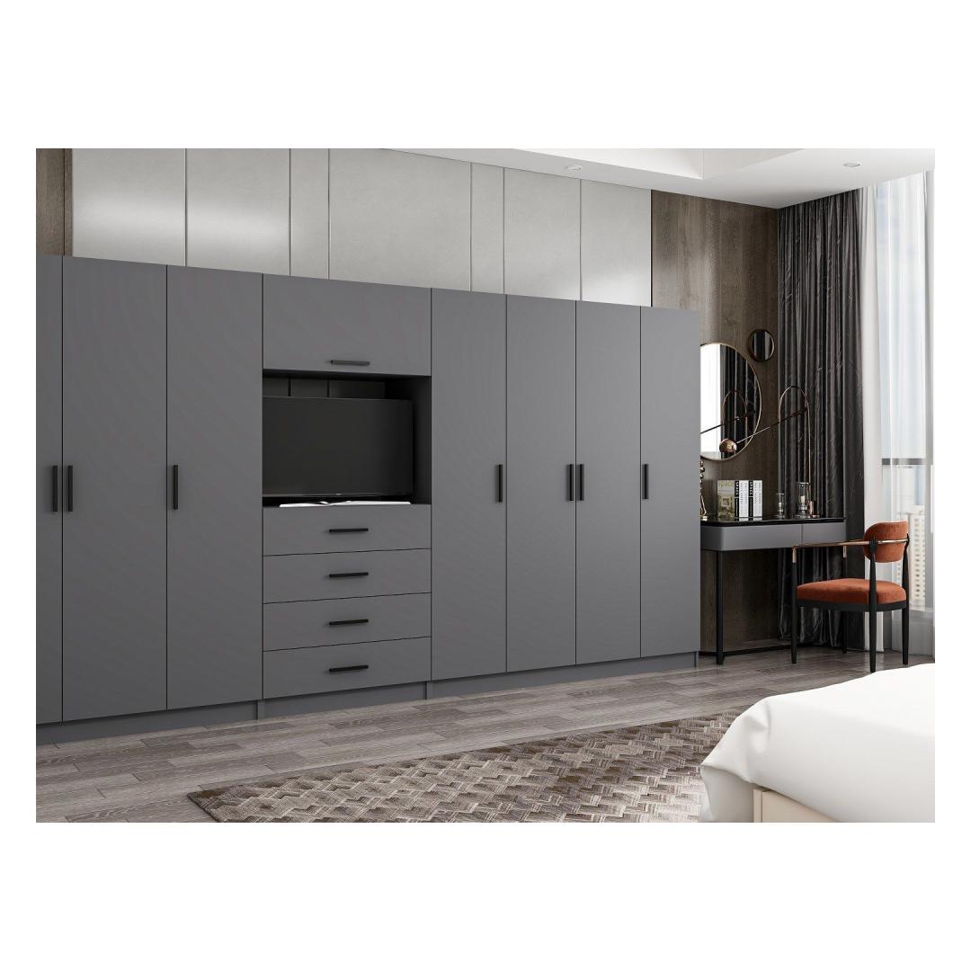 Kas olete väsinud rämpsukappidest ja korrastamata rõivastest? Öelge kaose ja tere organisatsiooniga meie uimastamise antratsiitide garderoobiga. See riidekapp ei ole ainult mööbliese, see on lahendus teie ladustamisprobleemidele ja teie kodule värske õhu hingeõhk. Muutke oma ruumi Oma klanitud disaini ja moodsa värviga tõstab see riidekapp kohe iga ruumi ilme. Antratsiidi värv lisab puudust keerukusest ja elegantsist, muutes selle teie kodukaunistusele stiilseks lisandiks. Öelge igavate, mahukate riidekappide ja tere klanitud ja stiilse salvestuslahenduse poole. Lõputud salvestusvõimalused Arvestades arvukalt riiulid, pakub see riidekapp kogu teie rõivaste, kingade ja aksessuaaride jaoks rohkesti hoiuruumi. Hoidke oma asjad selle avara garderoobiga organiseerituna ja hõlpsasti kättesaadavad. Riiulit saab kohandada vastavalt teie vajadustele, muutes salvestusruumi kohandamise hõlpsaks teie elustiilile. Ehitatud kestma See garderoob on valmistatud 100% melamiiniga kaetud osakeste tahvlist mitte ainult stiilne, vaid ka vastupidav ja pikaajaline. 18 mm paksus tagab, et see riidekapp talub igapäevast kulumist, samal ajal kui see seina külge kinnitatakse, lisab täiendavat stabiilsust ja turvalisust. Tehnilised detailid:Materjal: 100% melamiiniga kaetud osakeste laud paksus: 18 mm laius: 405cm Kõrgus: 210cm sügavus: 52cm värv: antratsiit Värv: Anthracite
