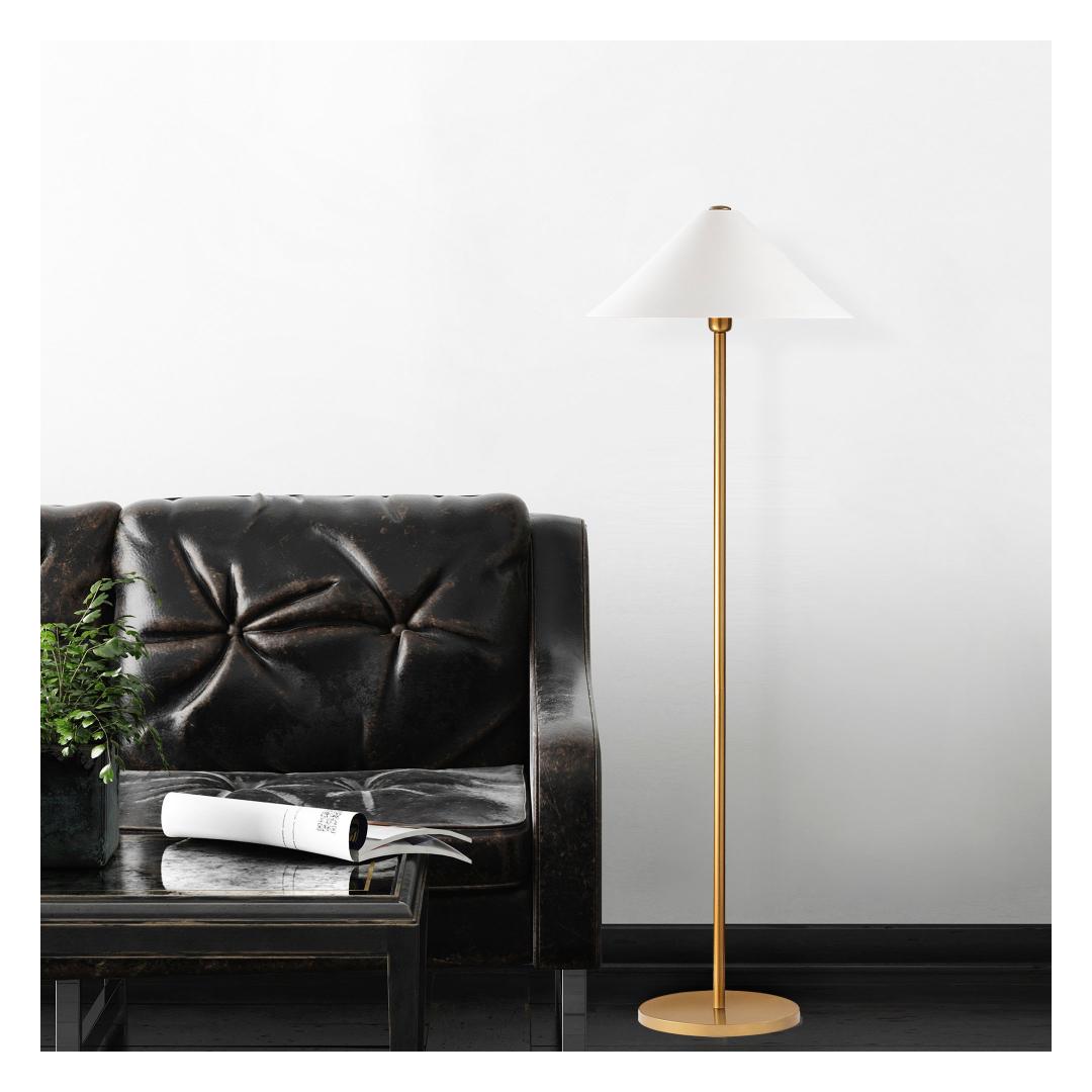 Metallist korgiga ja 40 cm läbimõõduga põrandavalgusti tagab laia ja ühtlase valgusjaotuse, luues igas ruumis sooja ja kutsuva õhkkonna. Korgi 21 cm kõrgus tagab, et valgus on suunatud täpselt sinna, kus seda vajate, olgu siis raamatut lugedes, projekti kallal töötades või lihtsalt pärast pikka päeva lõõgastudes.