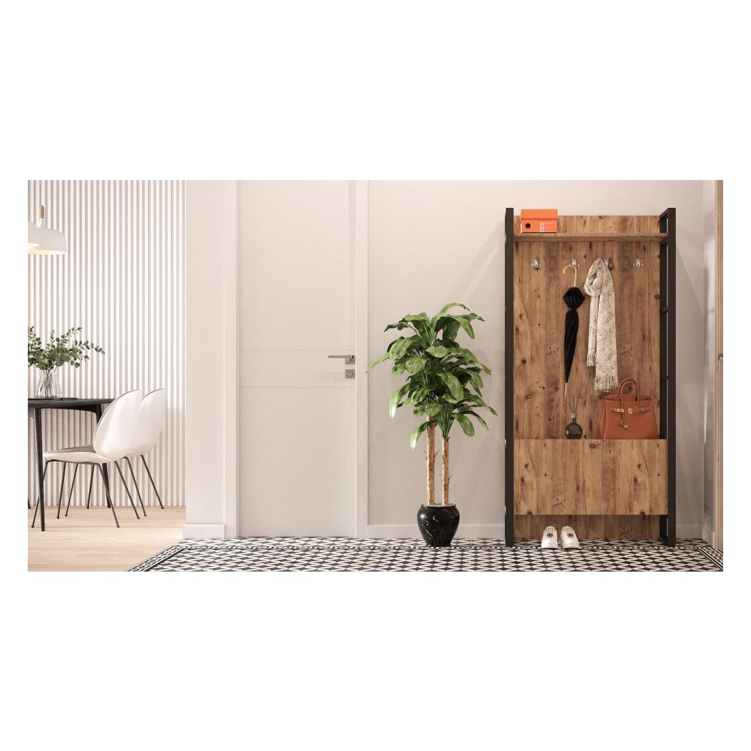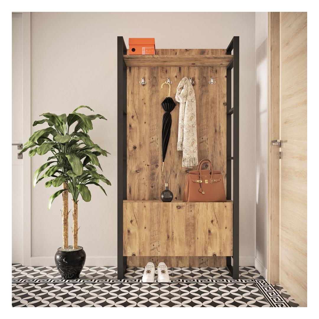 Täiusliku saali stendi tutvustamine kaasaegse ja tööstusliku välimuse jaoksMuutke oma koridor stiilseks ja funktsionaalseks ruumiks meie uimastava koridoristendiga. See kaasaegne ese ühendab endas modernse ja tööstusliku disaini parimad küljed, mistõttu on see kohustuslik ese igasse koju. Selle stiilne metallraam lisab rafineeritust, samas kui 100% melamiiniga kaetud puitlaastplaat tagab vastupidavuse ja pikaealisuse.Tõstke oma esikusse stiilselt ja funktsionaalseltMeie esiku stend ei ole lihtsalt mööblitükk, see on avaldus. Oma ainulaadse ja uudse disainiga tõstab see koheselt teie sissepääsu välimust, muutes selle kutsuvamaks ja külalislahkemaks. Atlandi männi värvus lisab soojust ja võlu, luues hubase atmosfääri teile ja teie külalistele. Jääge organiseeritud ja segadustetaÜtle hüvasti segastele koridoridele ja tere korraldusele. Meie koridori stendil on rohkelt hoiuruumi, mis võimaldab teil hoida oma hädavajalikud asjad käeulatuses. 18 mm paksune puitlaastplaat tagab vastupidavuse, nii et võite julgelt asetada sellele oma võtmed, kotid ja muud esemed, ilma et peaksite muretsema stabiilsuse pärast. Tehnilised üksikasjad:Toote tüüp: Toode on mõeldud kasutamiseks: Toode: Sali statiivMaterjal: Materjal: Materjal: Materjal: Materjal: Materjal: Materjal: Materjal: materjal: 100% melamiiniga kaetud puitlaastplaatPaksus: 18 mmRaam: MetallLaius: 90 cmKõrgus: 180 cmSügavus: 34 cmVärv: Atlandi mändÄrge jätke kasutamata võimalust kaunistada oma koridori meie moodsa ja tööstusliku koridoristendiga. Tellige kohe ja kogege oma kodus stiili ja funktsionaalsuse täiuslikku segu. Värv: Atlantic Pine