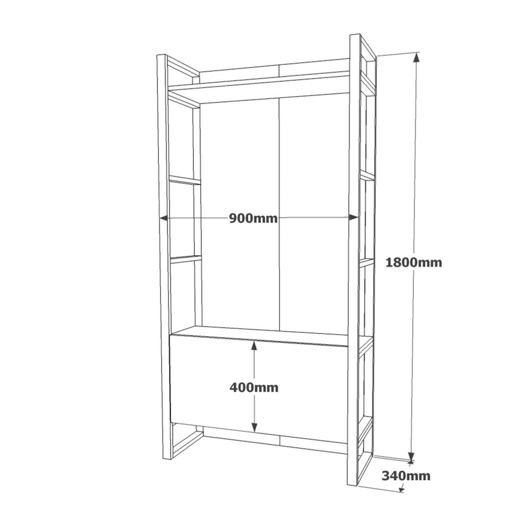 Width: 90 cm Height: 180 cm Depth: 34 cm