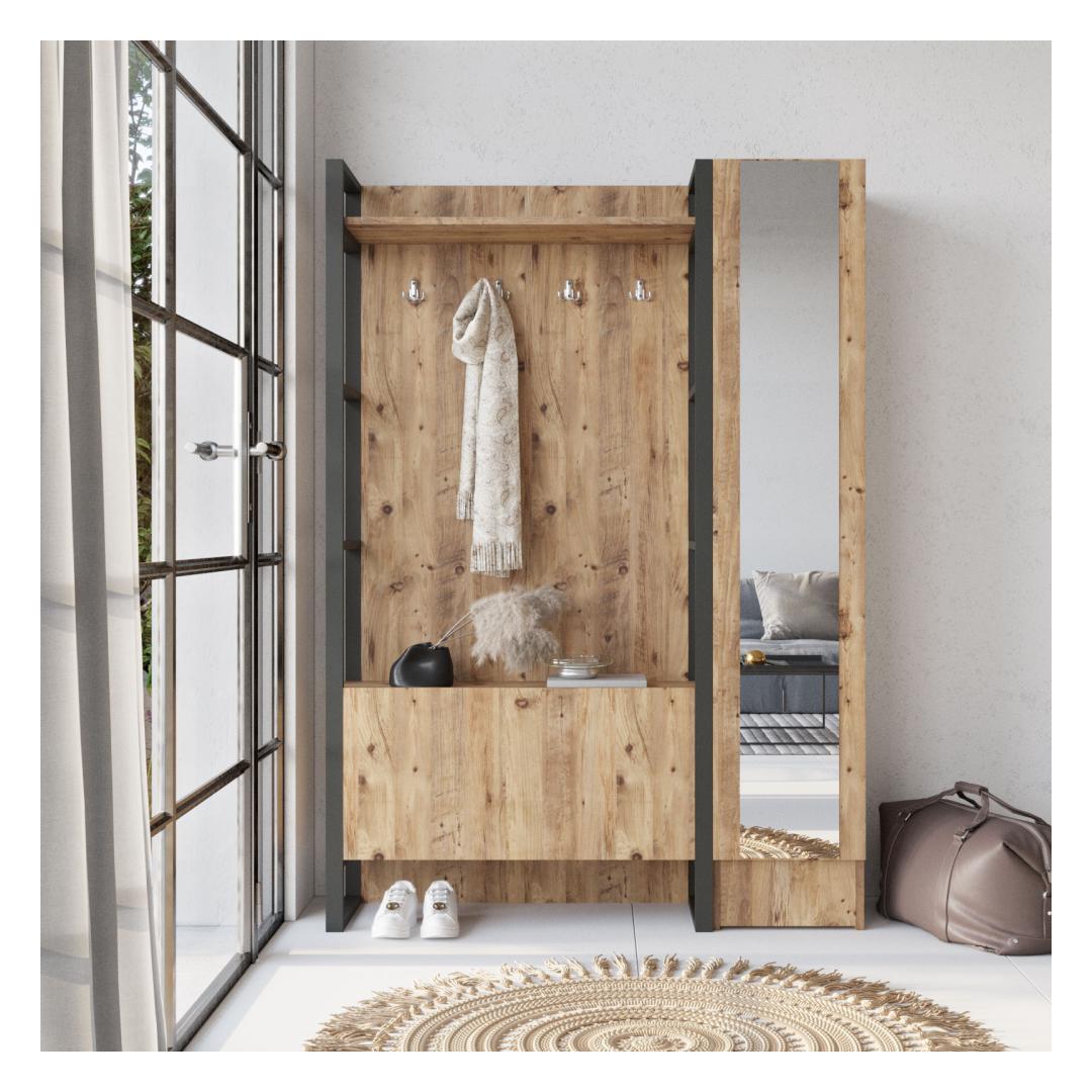 Transformeerige oma sissepääsuteed kaasaegse ja tööstusliku stendigaTehke avaldus meie moodsa ja tööstusliku saalihoidjaga, mis on loodud lisama teie esikusse rafineeritust. Valmistatud 100% melamiiniga kaetud puitlaastplaadist, ei ole see saalihoidja mitte ainult vastupidav, vaid ka kriimustuste ja plekkide suhtes vastupidav, tagades selle pikaealisuse. Tõstke oma sisekujundust atlantilise männi abilSaalihoidja on saadaval uimastava atlantilise männi värviga, mis lisab igale ruumile soojust ja elegantsust. Selle ainulaadne disain ühendab endas moodsaid ja tööstuslikke elemente, muutes selle ideaalseks täienduseks kaasaegsetele ja eklektilistele interjööridele. Jääge organiseeritud ja segadustetaTänu oma avaratele mõõtmetele pakub see koridori statiiv piisavalt ruumi kõigi oluliste asjade hoidmiseks. Riputage oma mantlid, sallid ja mütsid metallraamile, samal ajal kui 18 mm paksused riiulid pakuvad mugavat kohta kingade, kottide ja muude aksessuaaride hoiustamiseks. Hoidke oma sissepääsukorrus korras ja korras, luues külalistele külalislahke atmosfääri. Tehnilised üksikasjad:Materjal: Materjal: Materjal: Materjal: Materjal: Materjal: Materjal: Materjal: materjal: 100% melamiiniga kaetud puitlaastplaatPaksus: 18mmMetallraam lisab stabiilsust ja vastupidavustLaius: 125. 5cmKõrgus: 180cmSügavus: 34cmVärv: Atlandi mändUuendage oma sissepääsu meie moodsa ja tööstusliku saali stendiga. Selle vastupidav konstruktsioon, rohke hoiuruum ja elegantne disain muudavad selle igasse koju kohustuslikuks. Tellige kohe ja kogege muutust, mida see teie ruumi toob. Värv: Atlantic Pine